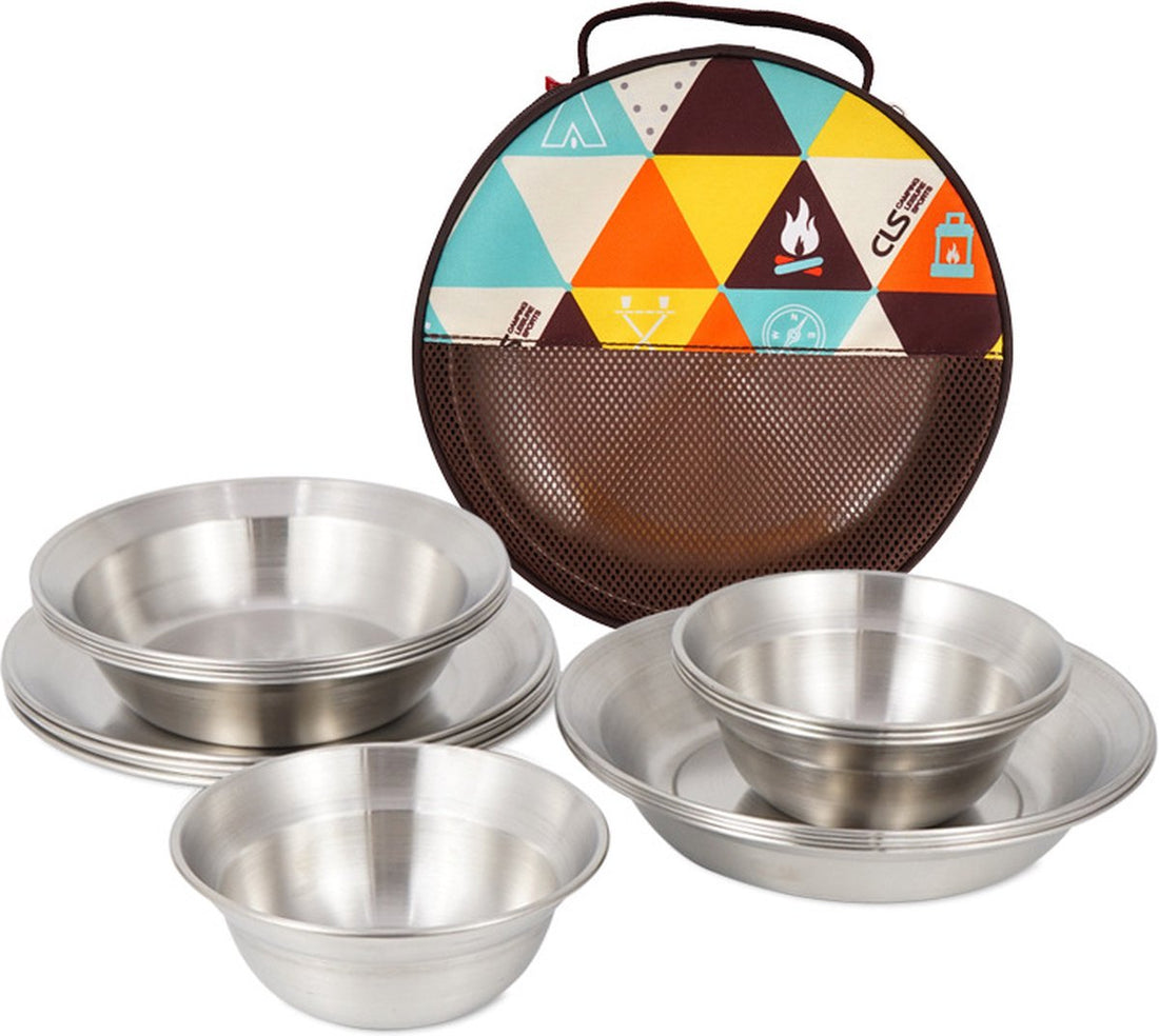 16-delig Kampeerservies Roestvrijstaal - Kampeer Servies RVS Borden