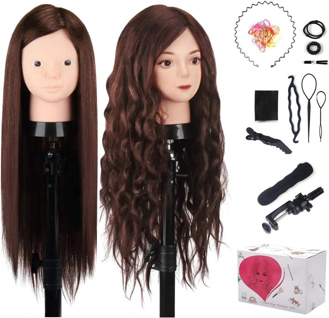 20 Inch 60% Echt Menselijk Haar Training Hoofd Etalagepop Hoofd Cosmetologie Kappers Etalagepop Dummy Pop Hoofd met Tafelklemhouder & DIY Haarstyling Vlecht Set