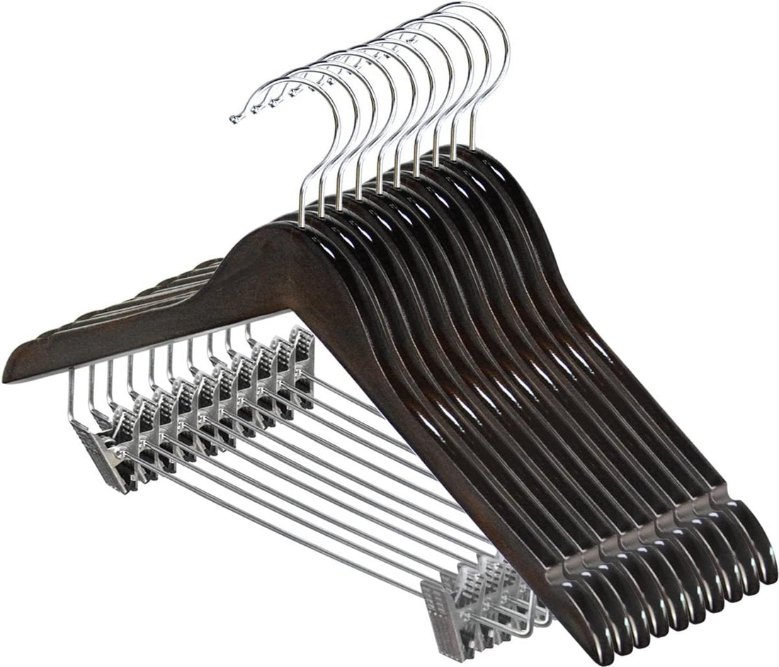 10 stuks 44,5 cm natuurlijke kleerhangers van hout, met klemmen van metaal, twee inkepingen, 360 graden draaibare haken, garderobehanger, broekhanger, hanger voor broeken, shorts, rok, sokken,