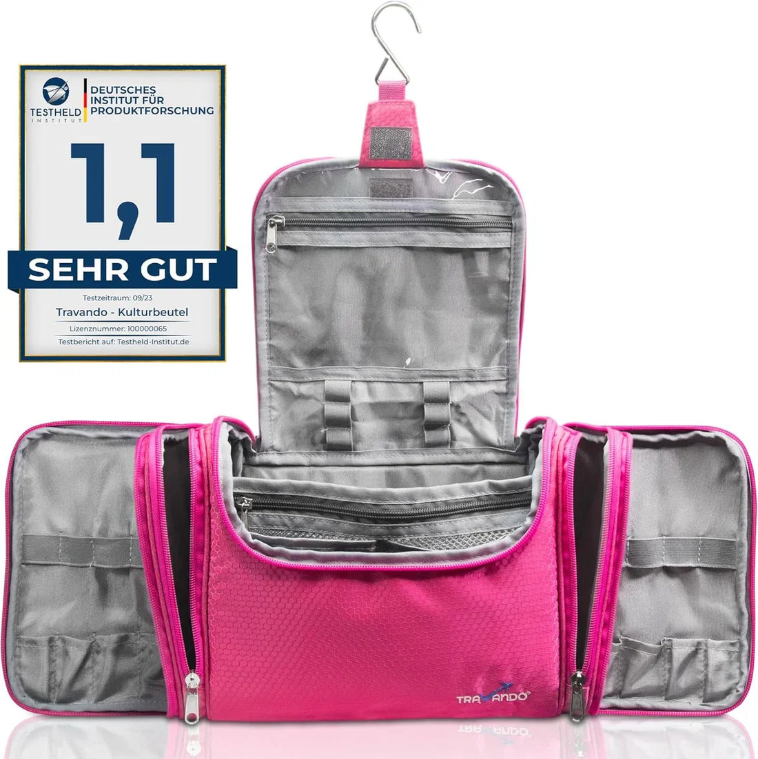 XXL toilettas voor dames, groot om op te hangen, maxi 8,8 liter volume, cosmetica tas met vele vakken, wasbenodigheden tas, beauty case, toilettas groot, reis-toilettas, roze