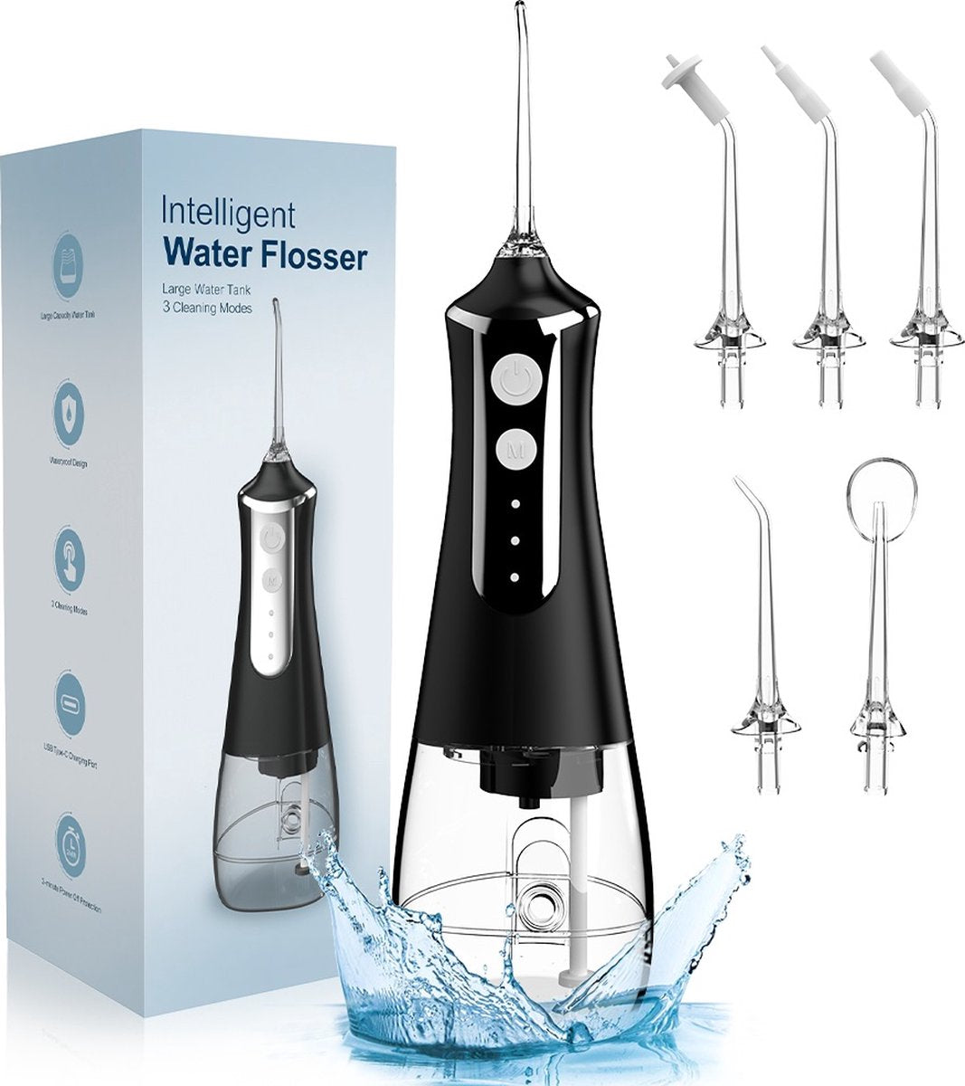 YHS WaterFlosser - Draadloos - 5 Opzetstukken - Monddouche - Elektrisch Flosapparaat - Water Pik - Elektrische Tandenstoker - Duurzaam - Hoge Druk Flossen - Zwart