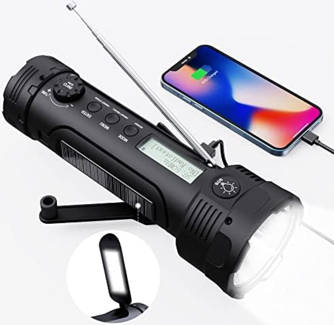 Zaklamp met zwengel, campinglamp, zwengelradio, met 3000 mAh oplaadbare accu, noodradio, led-campinglamp, FM-dynamo, zonnetalarm, voor outdoor, wandelen