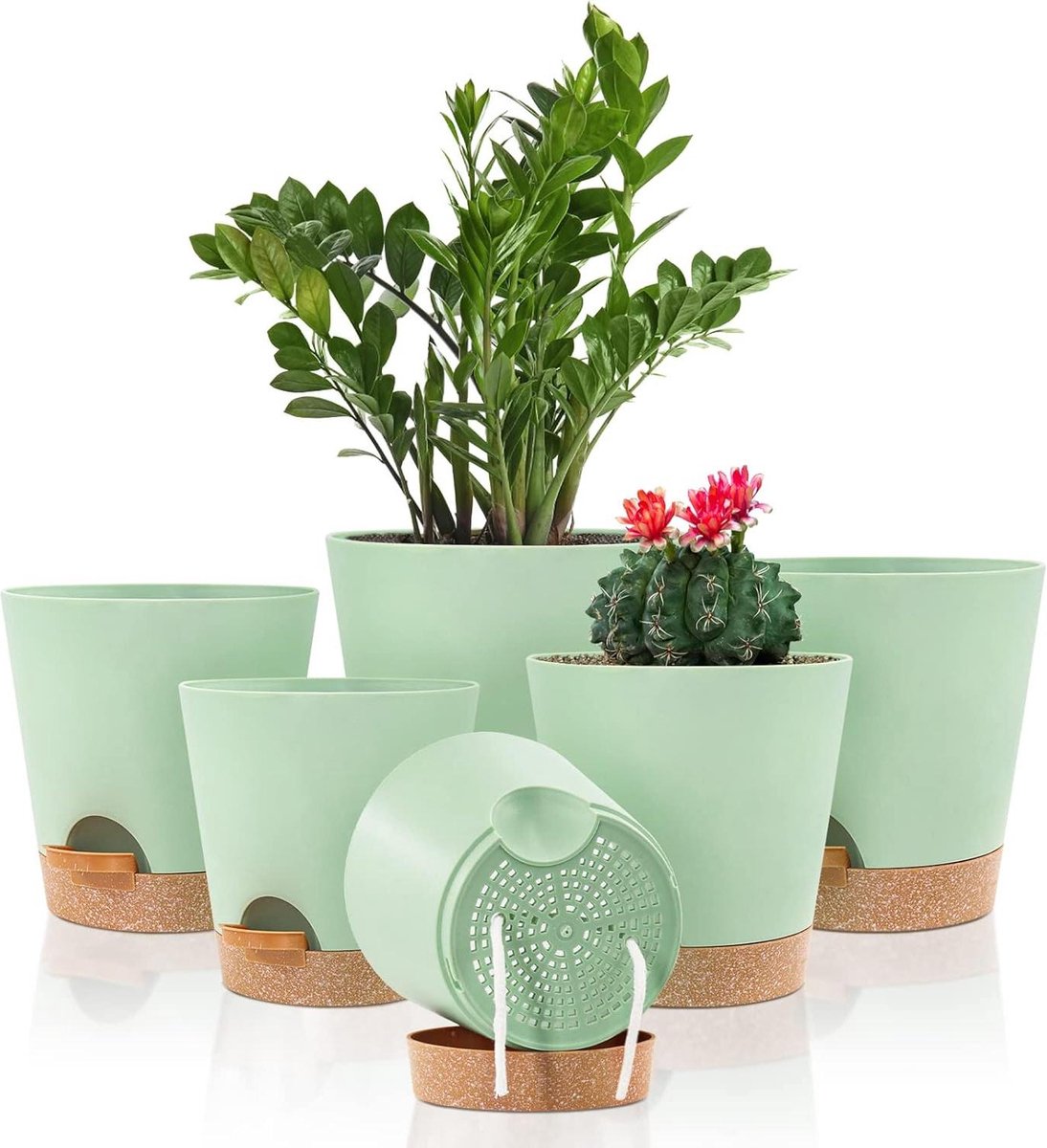 Zelfwaterende plantenpotten - Plastic bloempotten met afvoergaten en schotel - Binnen 20/17.5/16.5/15/14/12.5cm - Zelf water gevende plantenpotten voor kamerplanten Bloempot