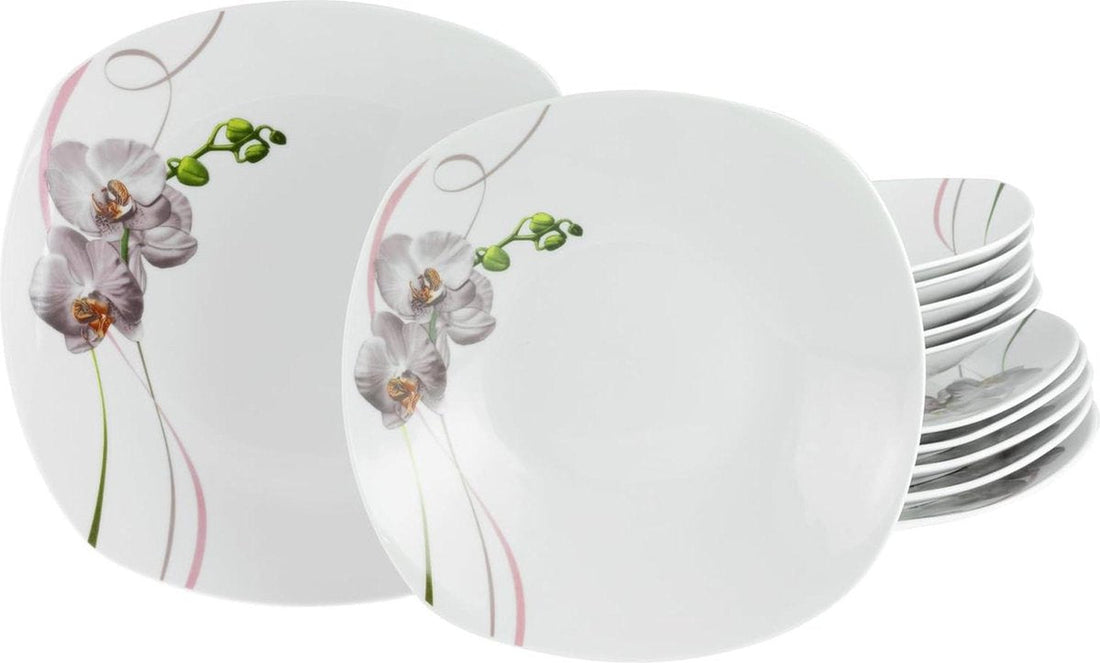 12-delige serviesset voor 6 personen - Square Orchidee - porselein - vaatwasser- en magnetronbestendig - kwaliteitsproductie bordenset 6 person