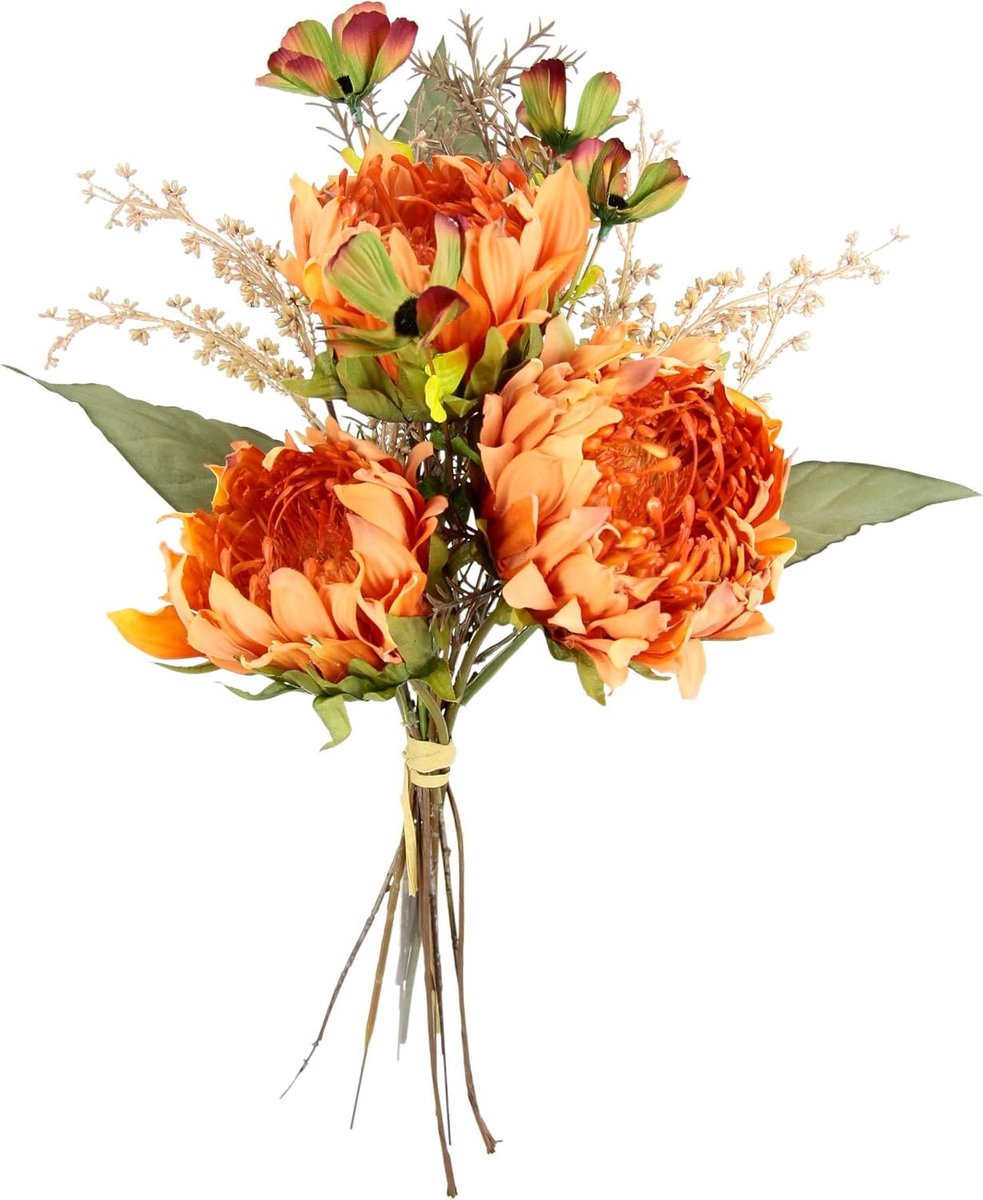 Kunstboeket Protea 43 cm boeket artisjok distel zijden bloem kunstbloem decoratie herfst bruiloft huis - herfstdecoratie nepbloem oranje kunstboeket