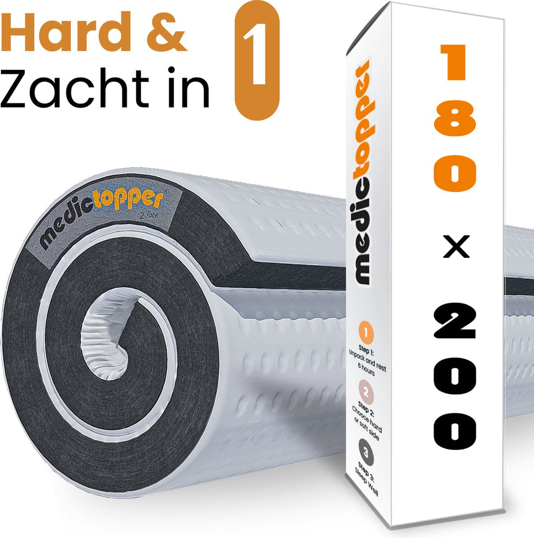 Medic Topper - Topper Matras 180x200 cm - Luxe Topdekmatras met Verkoelende Gel en Traagschuim voor Ultiem Slaapcomfort en Rugpijnverlichting - Ideaal als Matrasbeschermer voor elke Slaapkamer - Topper 180 x 200 x 7 cm