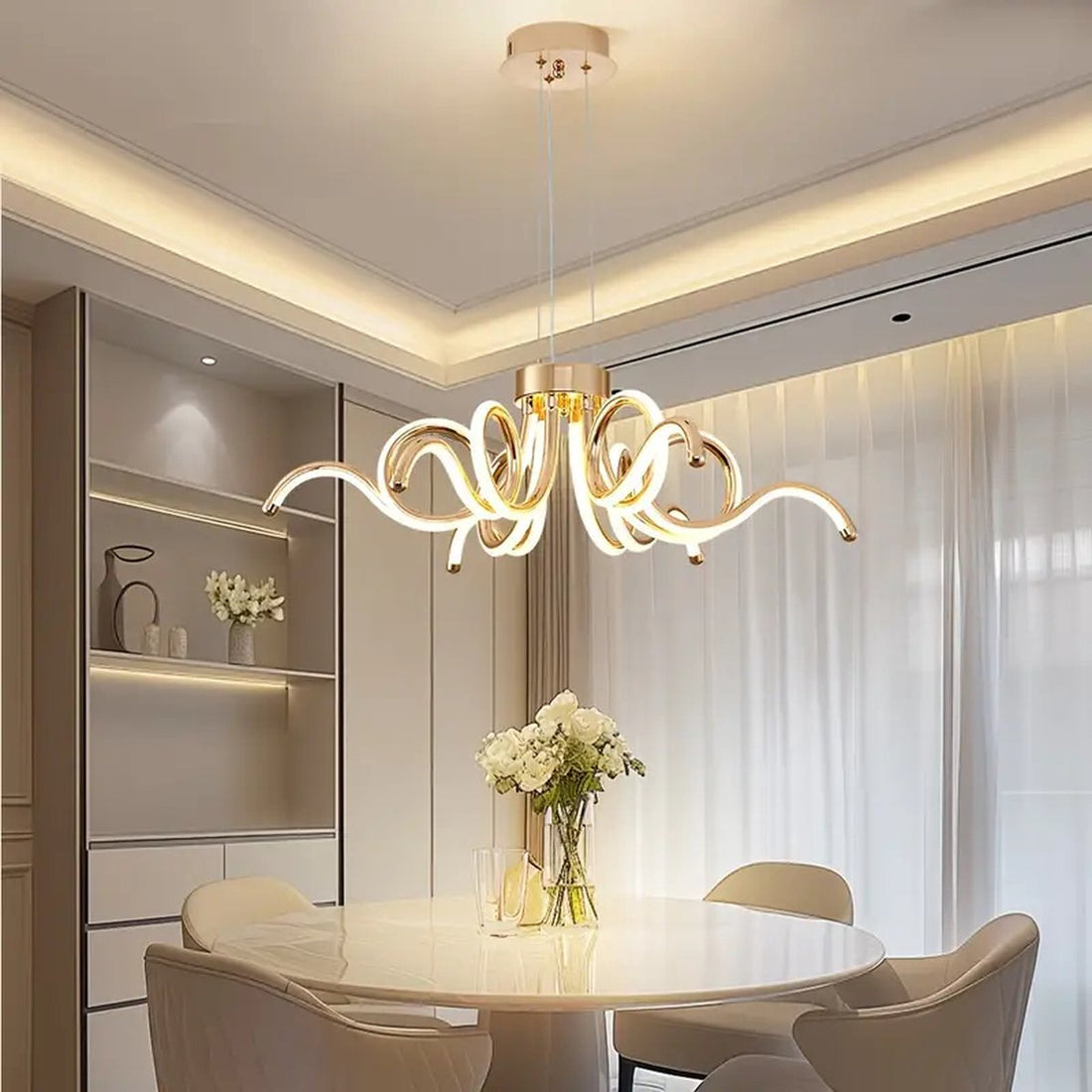 LuxiLamps - Spinnen Hanglamp - Goud - 60 cm - Kroonluchter - Licht In 3 Kleuren - Boven De Eettafel - LED Kroonluchter Verlichting - 50W