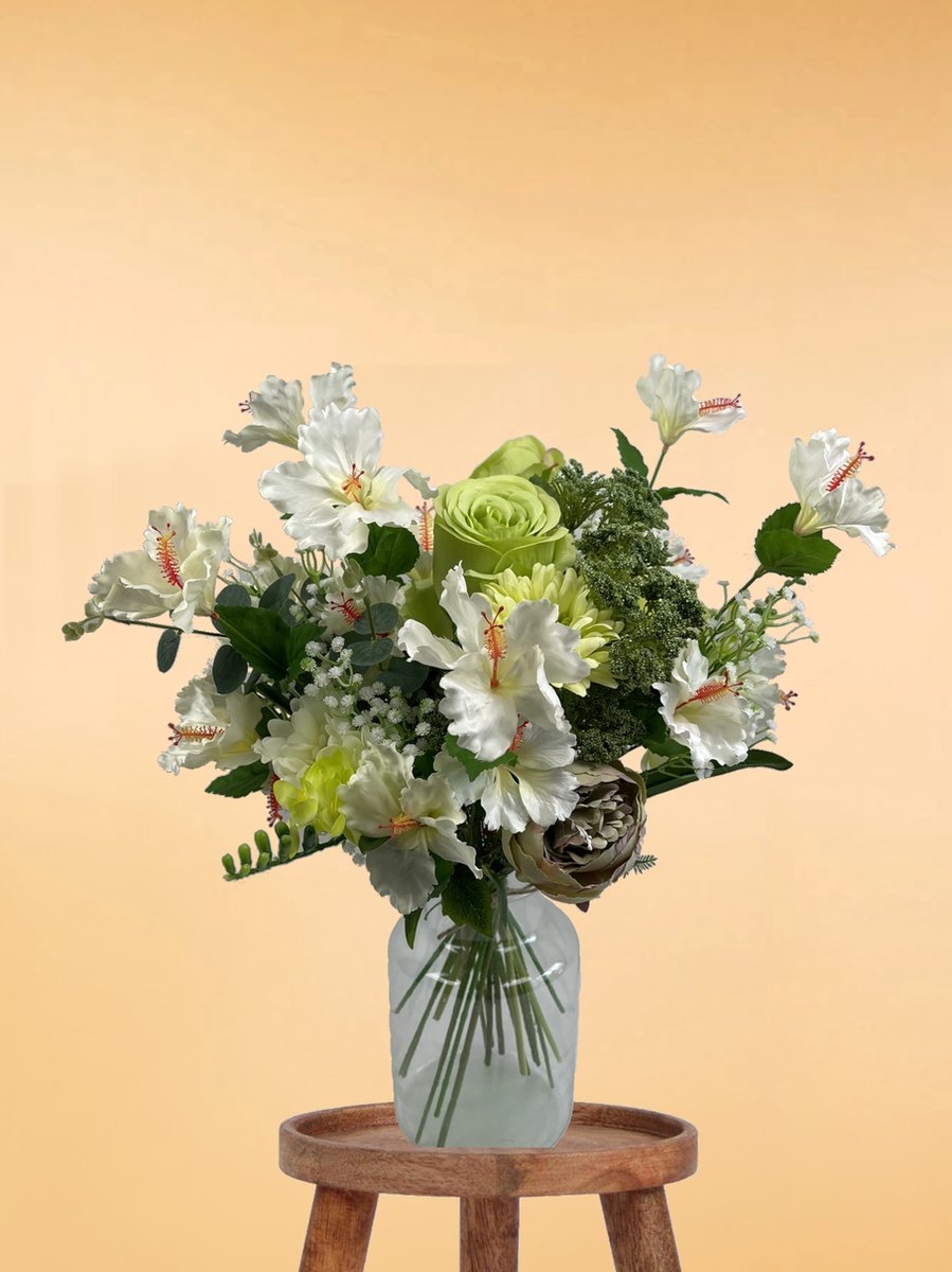 Zijden Boeket - Stralend wit - diverse Bloemen 75 cm hoog - Kunstbloemen