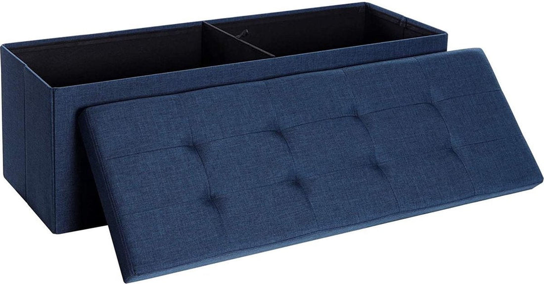 bank met opbergruimte, kist met deksel, opvouwbaar zitmeubel, bed, slaapkamer, gang, ruimtebesparend, 120L inhoud, stal tot 300 kg, gewatteerd, marineblauw LSF77IN