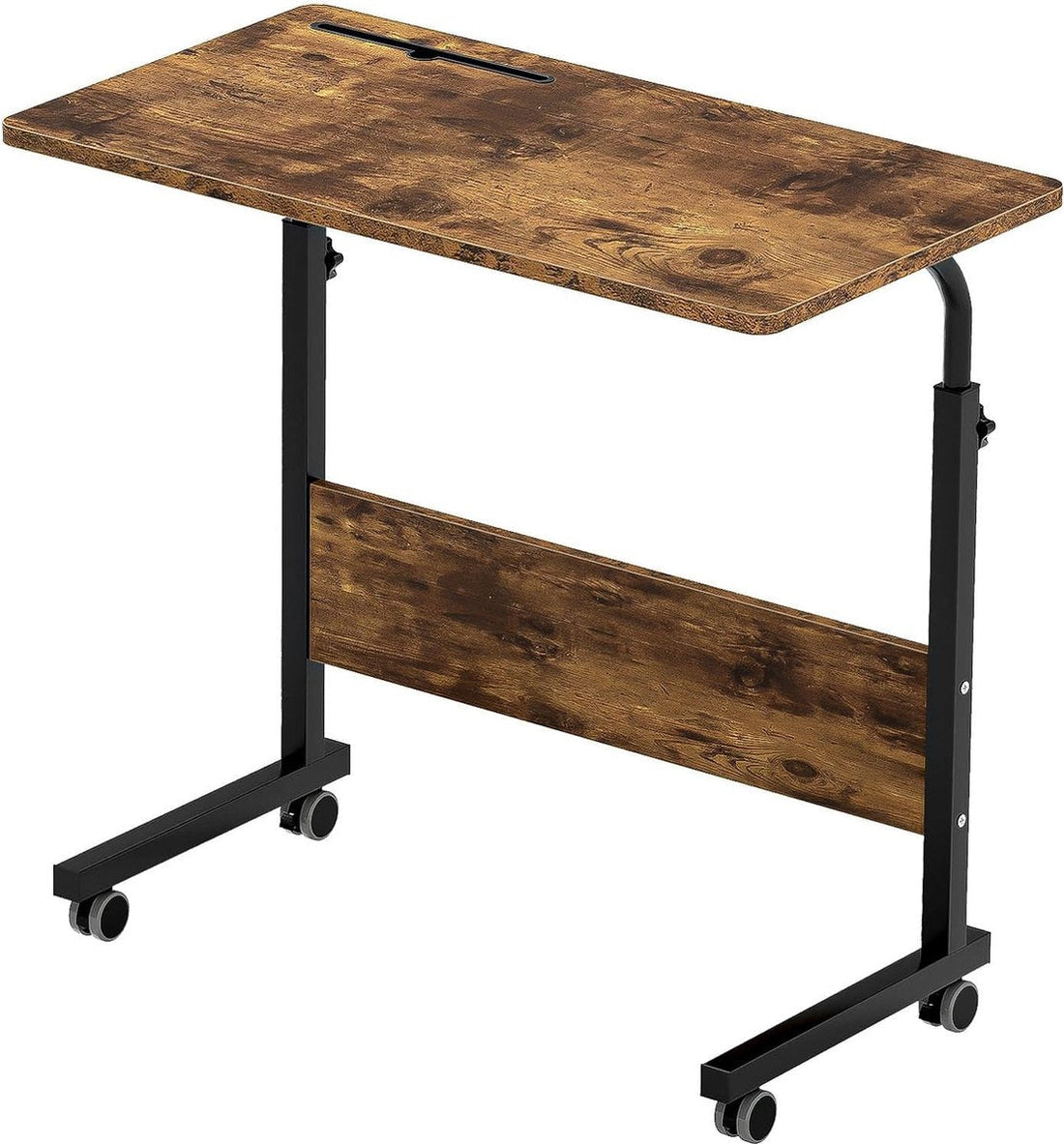 Bureau In hoogte verstelbaar laptoptafel, computertafel met tabletsleuf, 80 x 40 cm, pc-tafel, banktafel, verzorgingstafel, bijzettafel met wieltjes, vintage bruin