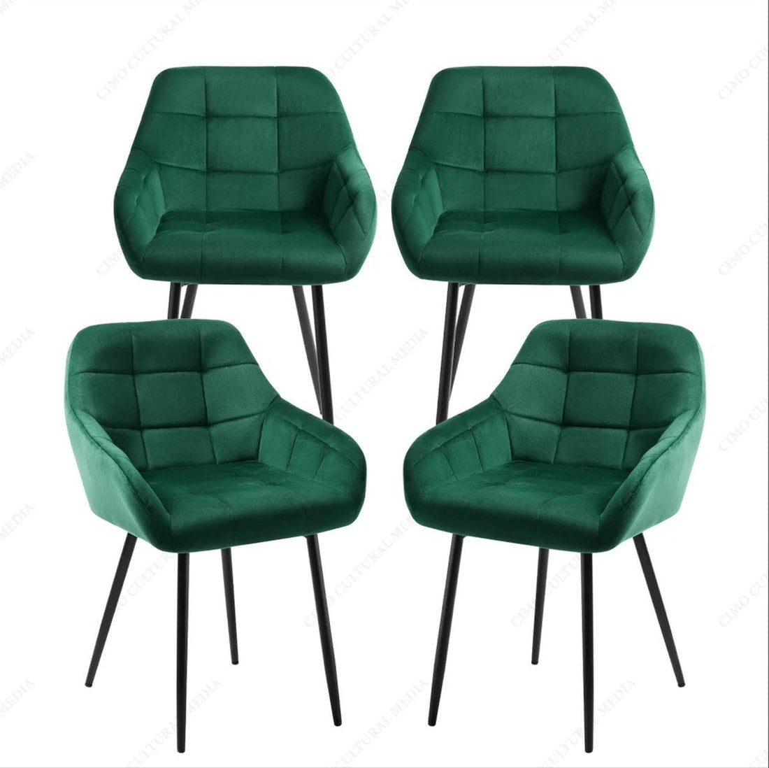 ByLoesje® Set van 4 Eetkamer Stoel Groen - Armleuningen - Fluweel - Gestoffeerd - Designstoel - Modern - Poten Zwart