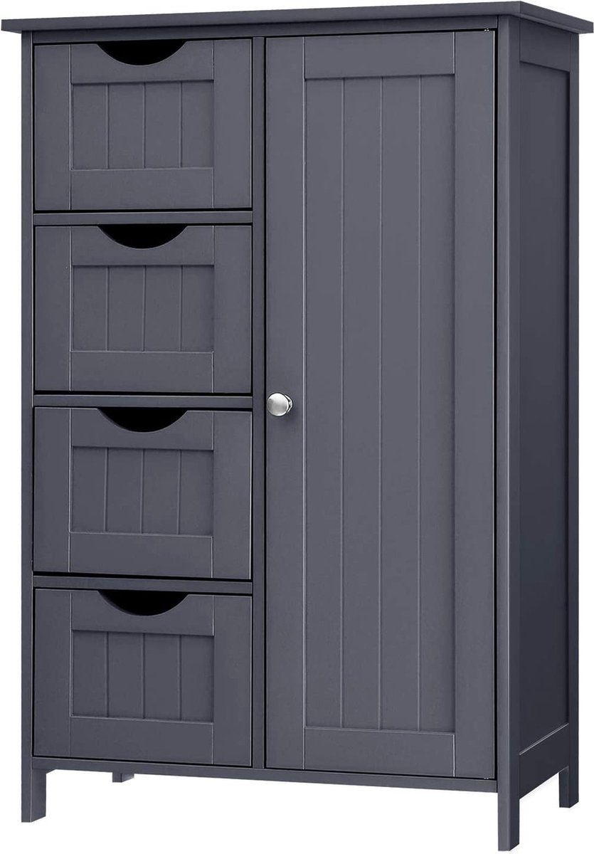 Dressoir badkamerkast, badkamerkast van hout bijzetkast commode met 4 laden, kastdeur, verstelbare plankvlak, woonkamer, keuken, hal, diep, vrijstaand, grijs LHC41GY