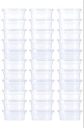 Het pakket bevat in totaal 100 stuks transparante plastic opslagcontainers met aparte deksels die kunnen worden geladen met 250ml vloeistoffen.