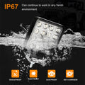 Uitstekende prestaties, kan ruwe omgevingen weerstaan: deze waterdichte LED-lamp (IP67) is gemaakt van een stevige aluminium gegoten behuizing die stabiel en duurzaam is. Het verbeterde PC-lensoppervlak heeft een hoge lichtdoorlatendheid en is waterdicht, stofdicht, schokbestendig en roestbestendig volgens IP67 voor gebruik onder extreme omstandigheden.