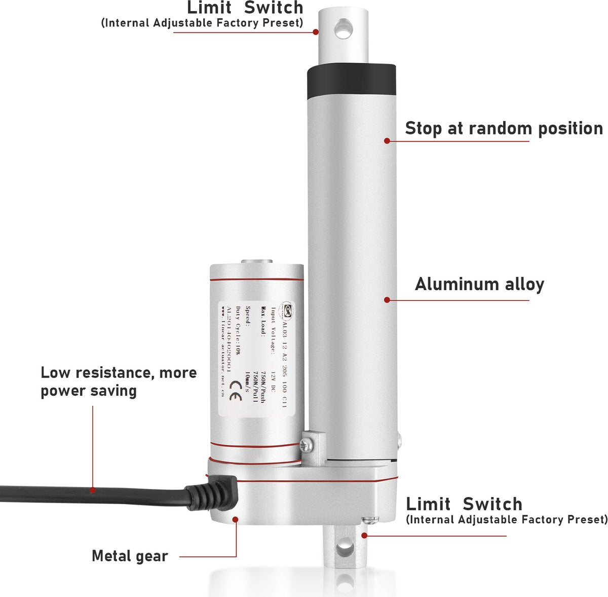 - Slijtvaste duurzaamheid - De lineaire actuator kan tot 330lbs duwen en trekken, wat helpt om je actuator vooruit en achteruit te sturen.