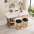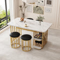 140*80*75cm moderne eettafel,,Eettafel set (met eettafel, 4 stoelen), keuken tafel set met stalen frame, eettafel met opslagruimte, rechthoekige eettafel, eetkamer stoelen, wit en goud
