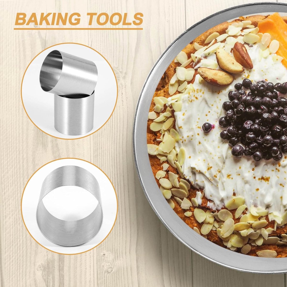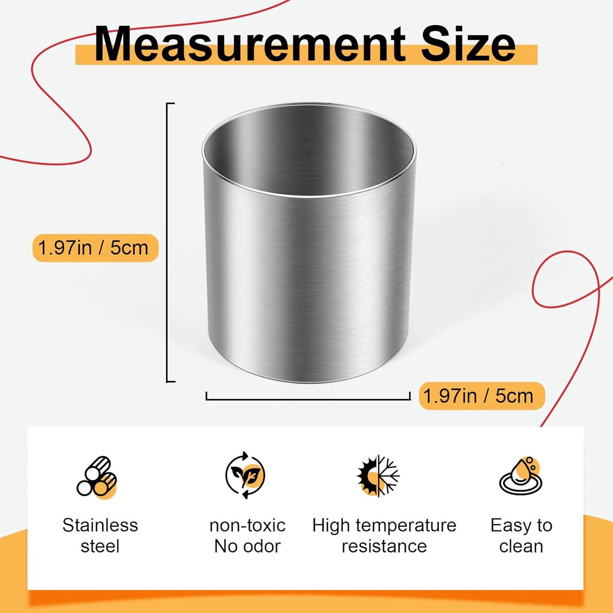 Brede toepasbaarheid - Bak thuis met deze ronde uitsteekvormen, laat je en familie genieten van hun bladerdeeggebak, donuts, koekjes, scones, mini-cakes, Engelse muffins, zandbrood, canape, pannenkoeken, minipizza, fondant, eieren bakken. Hoge kwaliteit: hoogwaardig roestvrij staal, dat het sterk maakt, zodat ze hun vorm behouden, roestvrij, vaatwasmachinebestendig en getest op ovenveiligheid tot 500 °C. Afmetingen: diameter van 5 cm en de vormhoogte meet 5 cm, een perfecte maat voor kleine koekjes en mini-mousse-bereiding. Eenvoudig te gebruiken: maak een schonere snede in je deeg of gebak en til het er gemakkelijk af zonder te plakken. De afgeronde hoeken beschermen je vingers en handpalmen bij het drukken.