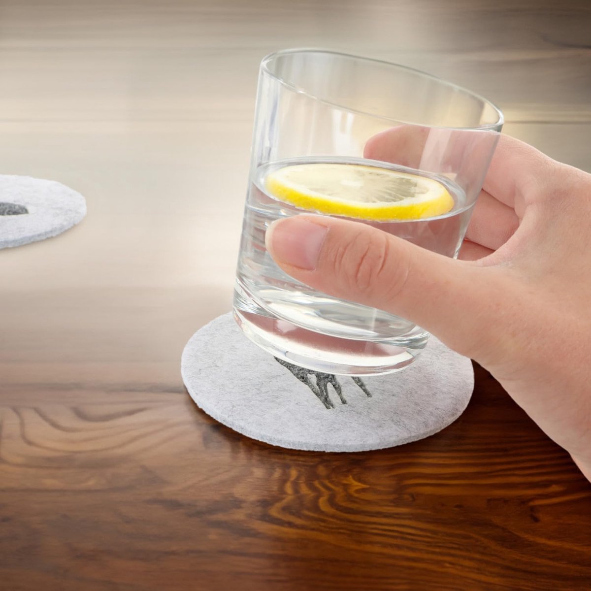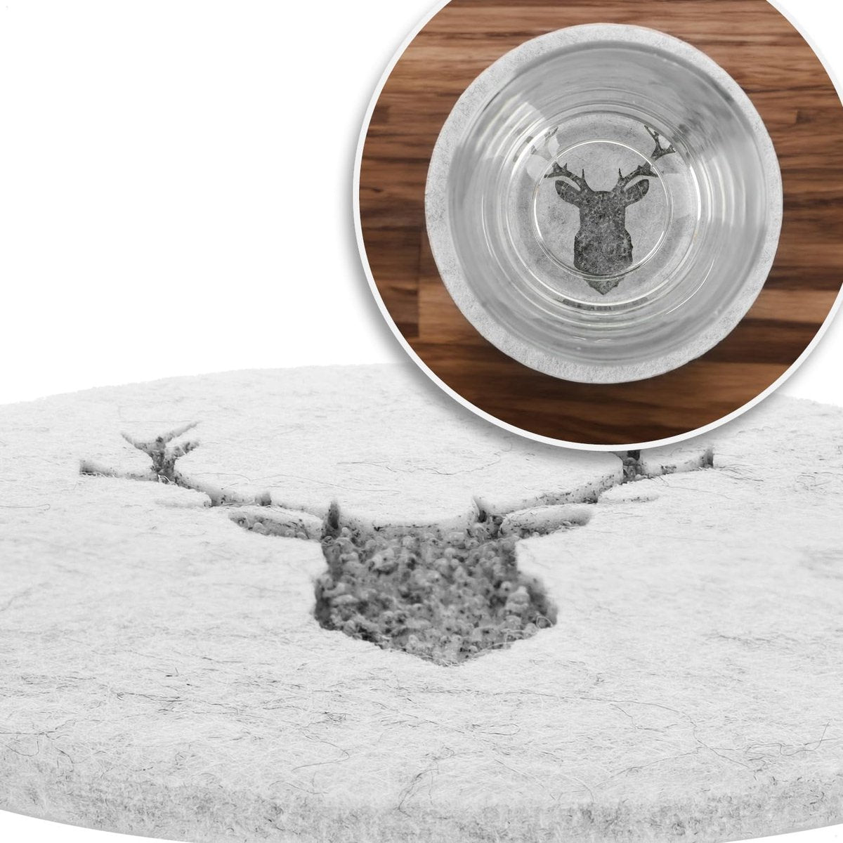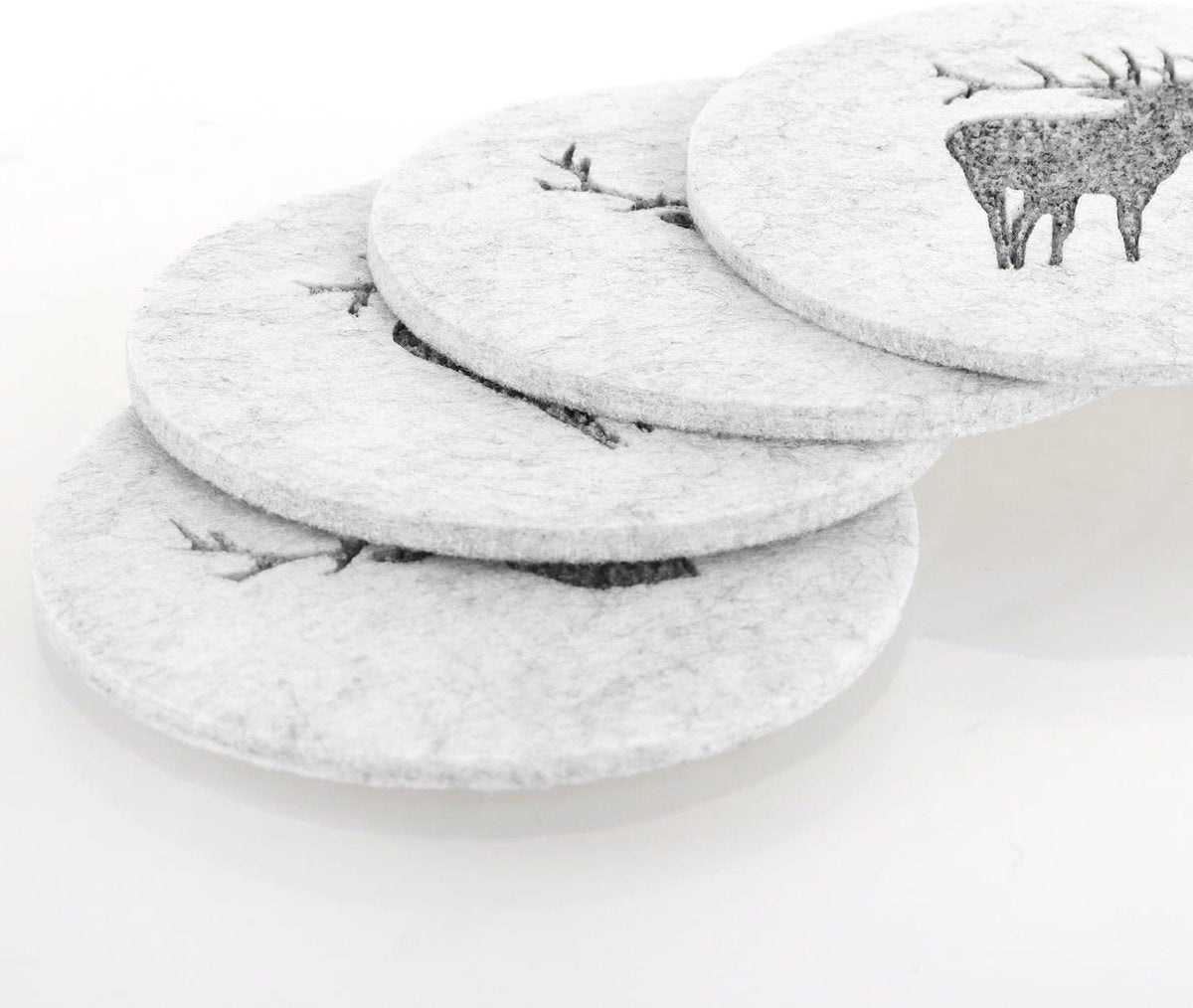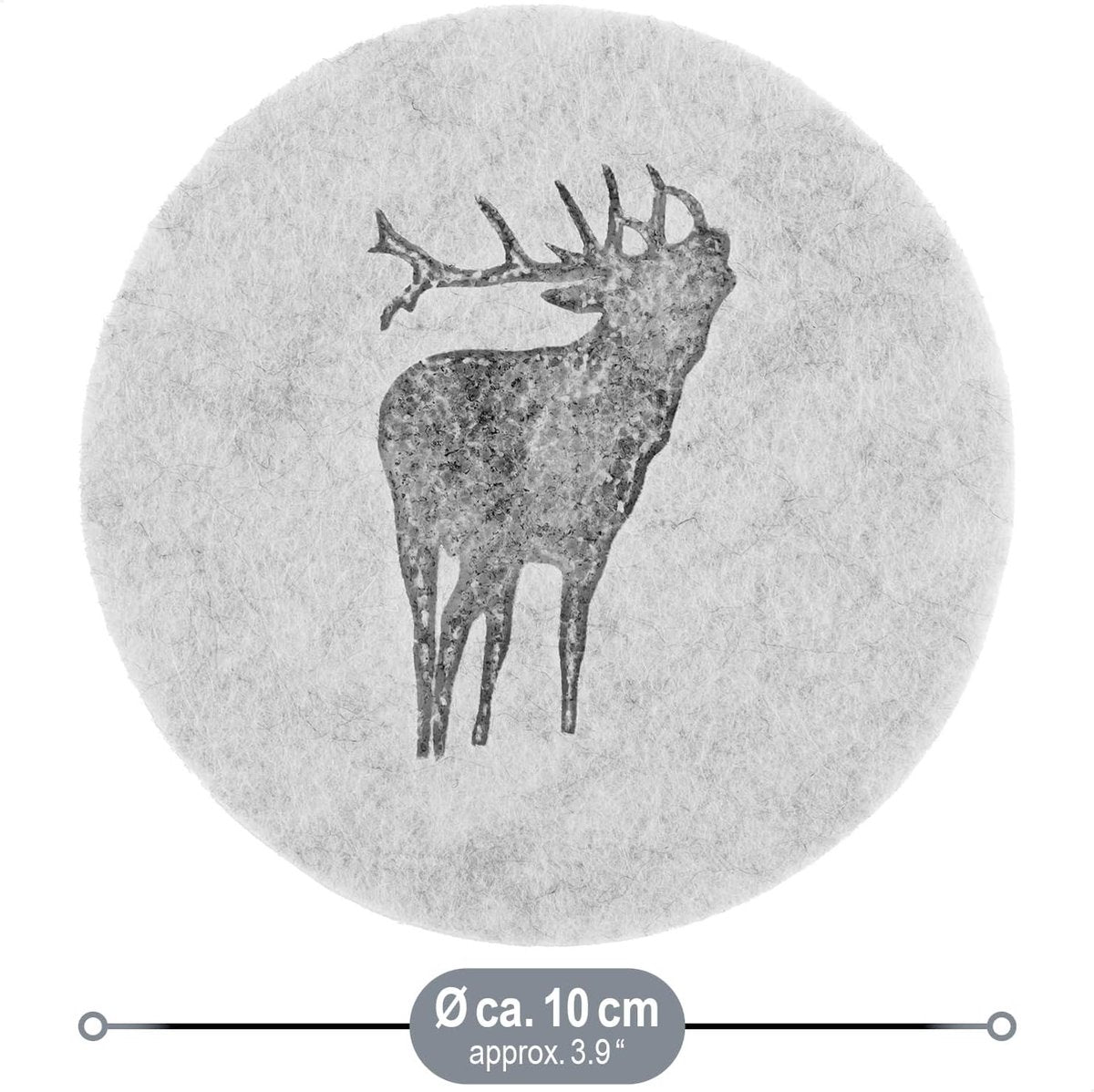 16x vilten onderzetters, tafelbeschermer van robuust vilt, onderlegger voor kopjes, glazen, kopjesonderzetters met hertenmotief, ronde beschermmat, afwasbaar, Ø 10 cm (Ø 10 cm, hert)
