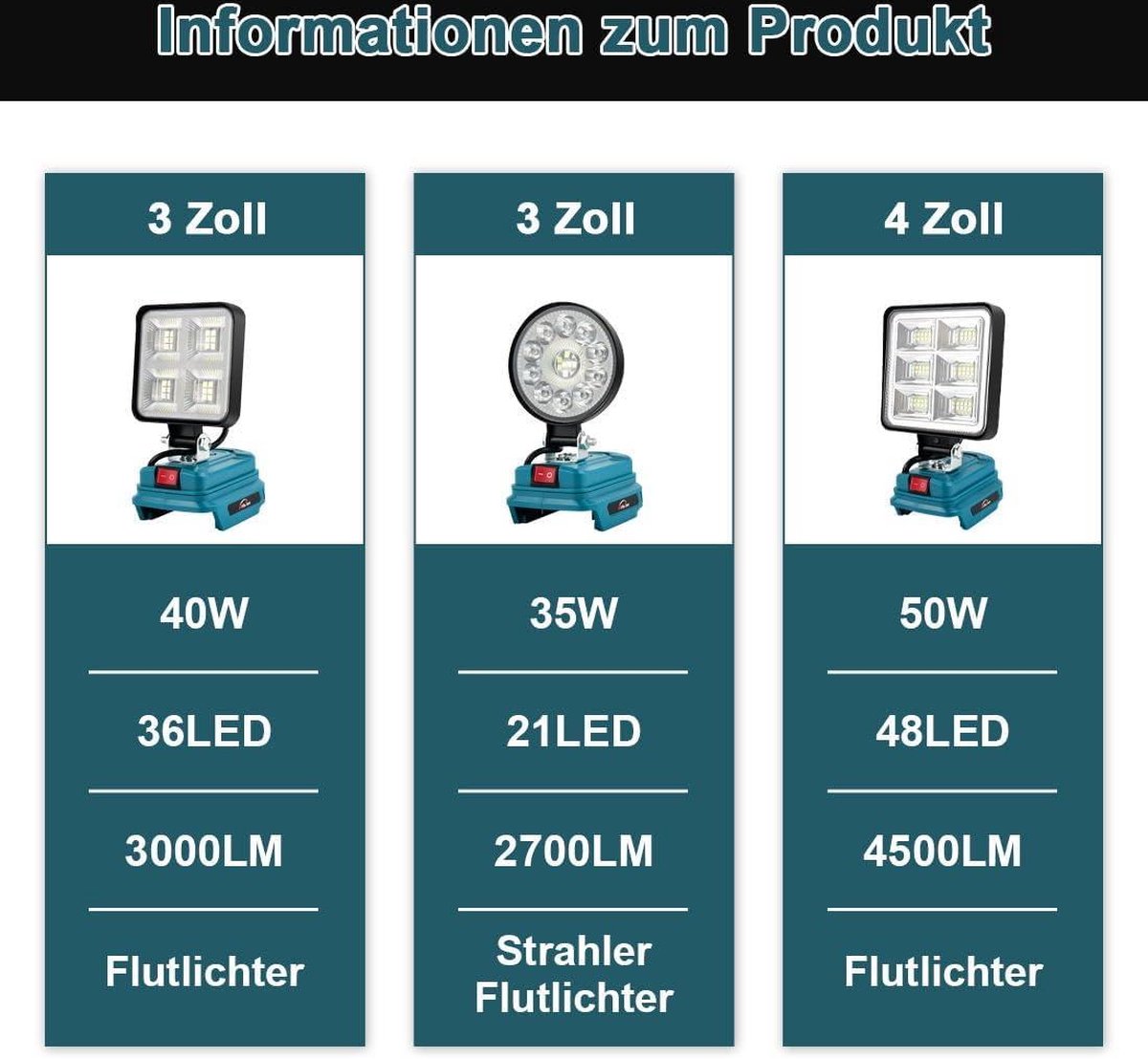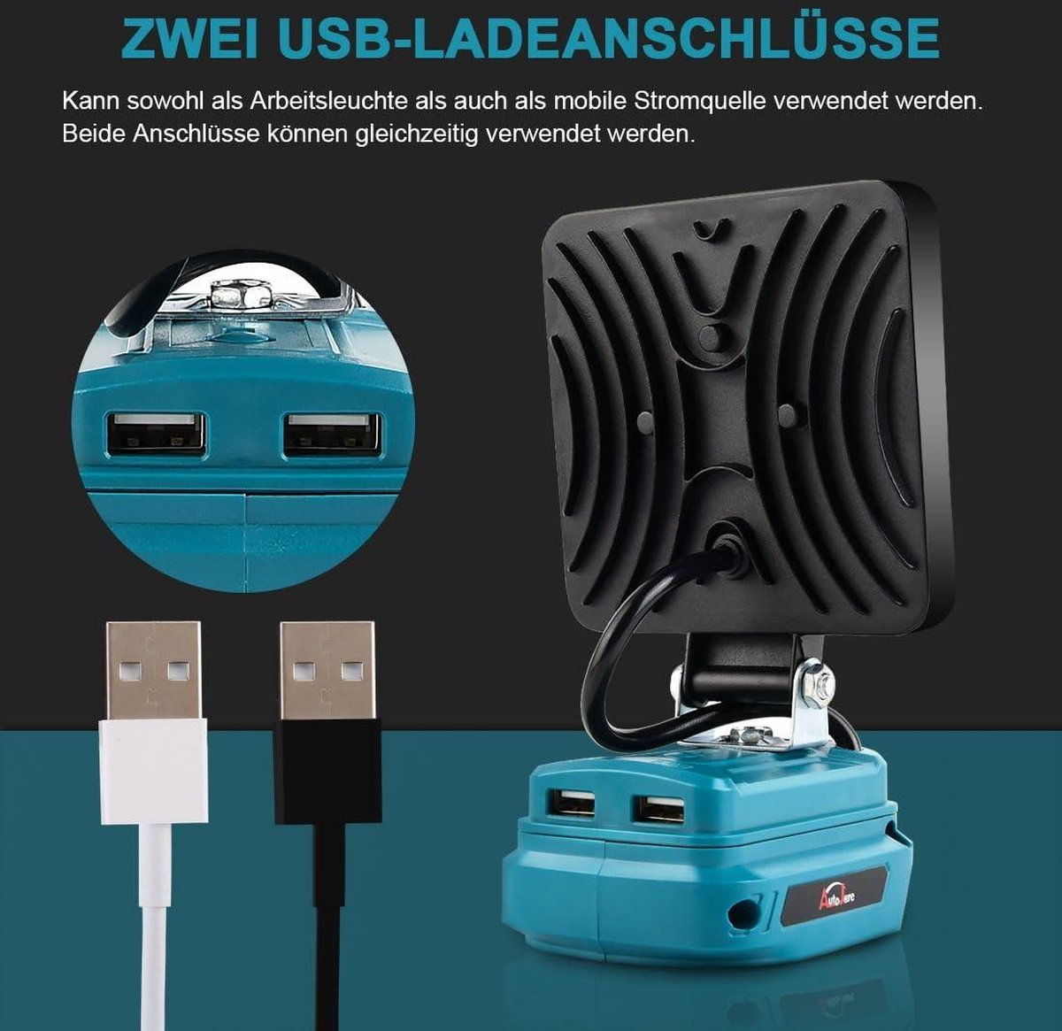 18 V 50 W draadloze schijnwerper lamp - Acculamp Makita - USB-opladen - Draagbare led-werklamp - Autoreparatie - Thuisverlichting - Camping - Vissen - 10 cm
