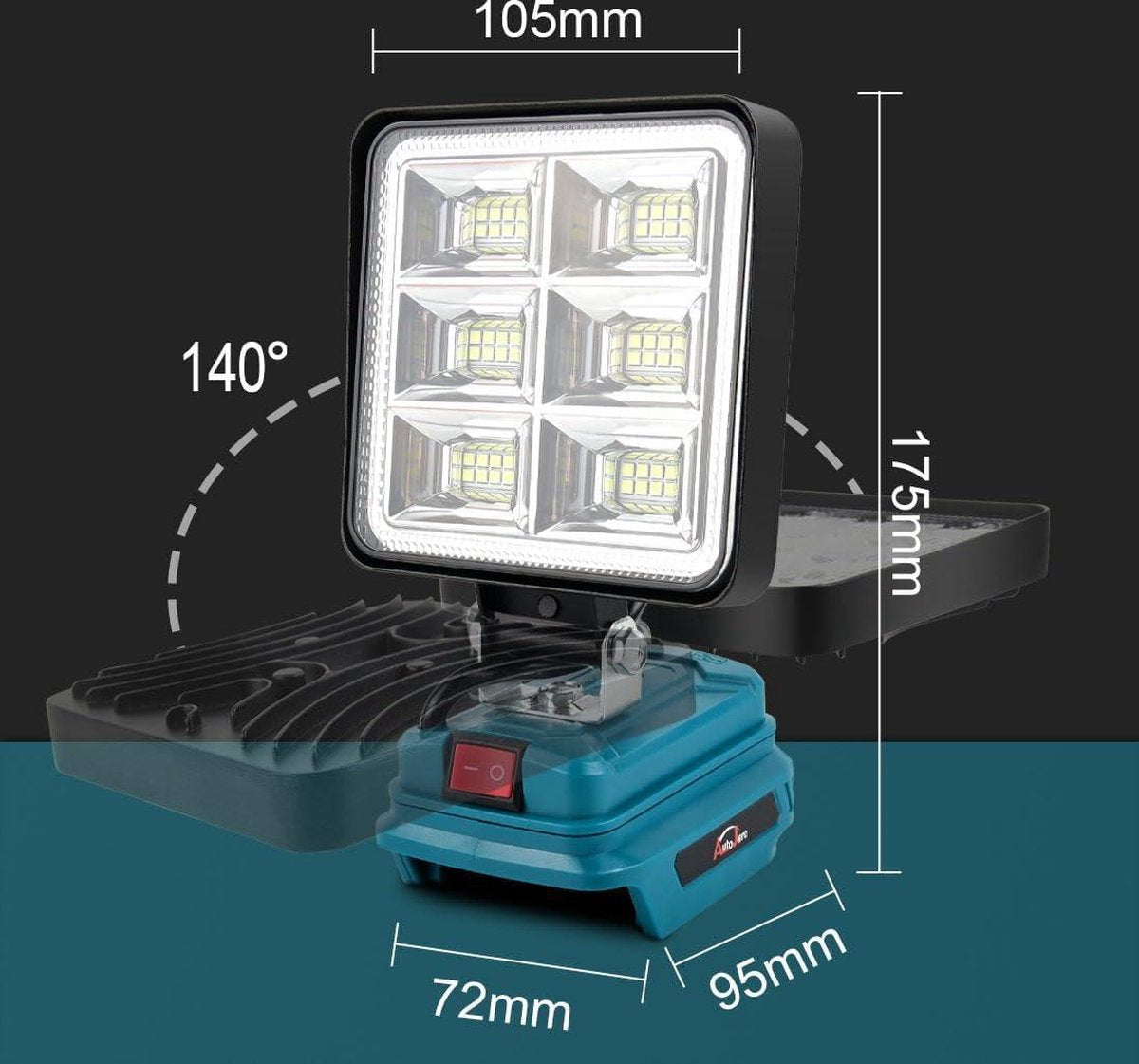De draadloze bouwlamp is ideaal voor diverse doeleinden, zoals werken in het donker, autoreparaties, kamperen, wandelen, vissen en meer. Met de mogelijkheid om de hoek aan te passen en te draaien, biedt deze lamp maximale flexibiliteit voor de gebruiker. De efficiënte warmteafvoer zorgt voor een langere levensduur van het product en maakt het ideaal voor langdurig gebruik.