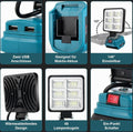 Deze draagbare 50 W bouwplaatslamp met 4500 lumen brede schijnwerper is ontworpen om een groter gebied te verlichten, dankzij de led-chips met hoog lumen en 140 graden instelbare hoek. Met zijn unieke design, draadloze functionaliteit en handige USB-oplaadpoorten, biedt deze lamp ultiem gemak en flexibiliteit voor verschillende toepassingen.