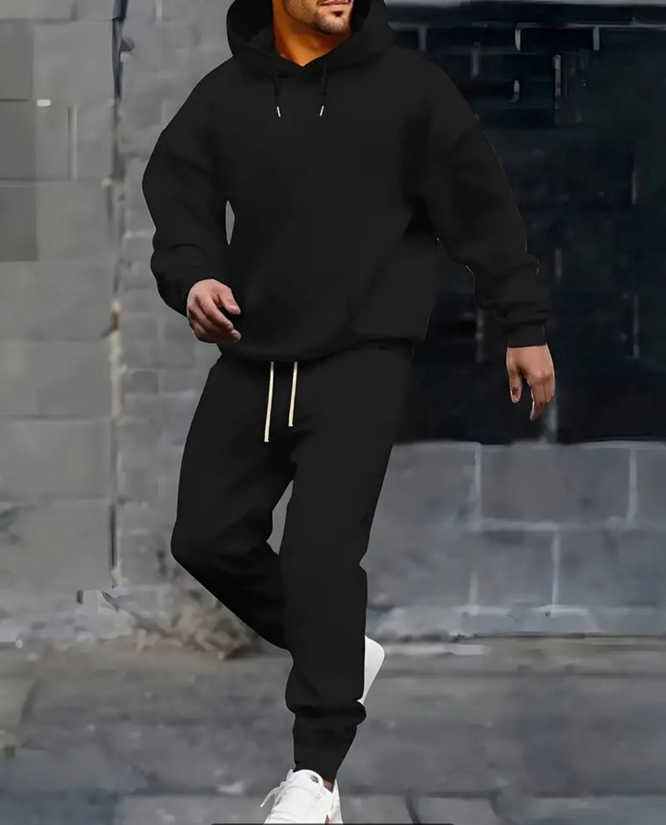 2 delige fijn zittende heren outfit joggingsset hoodie sweater en broek