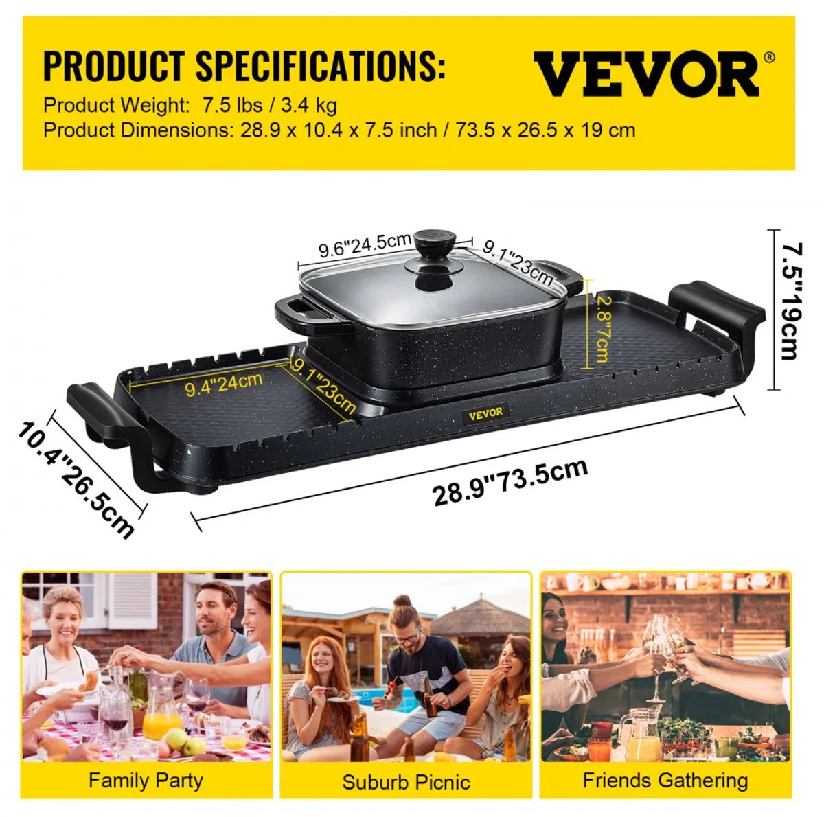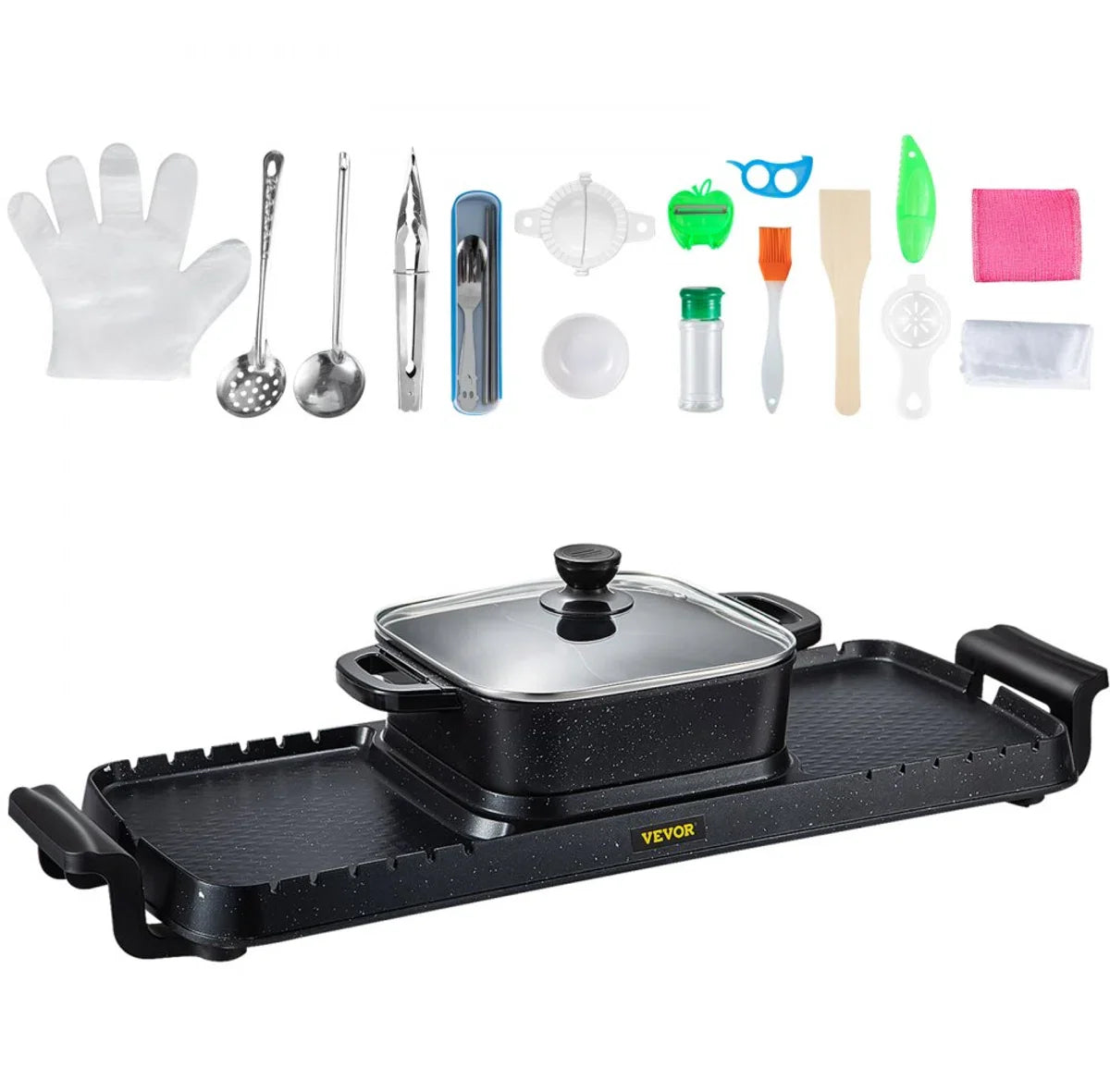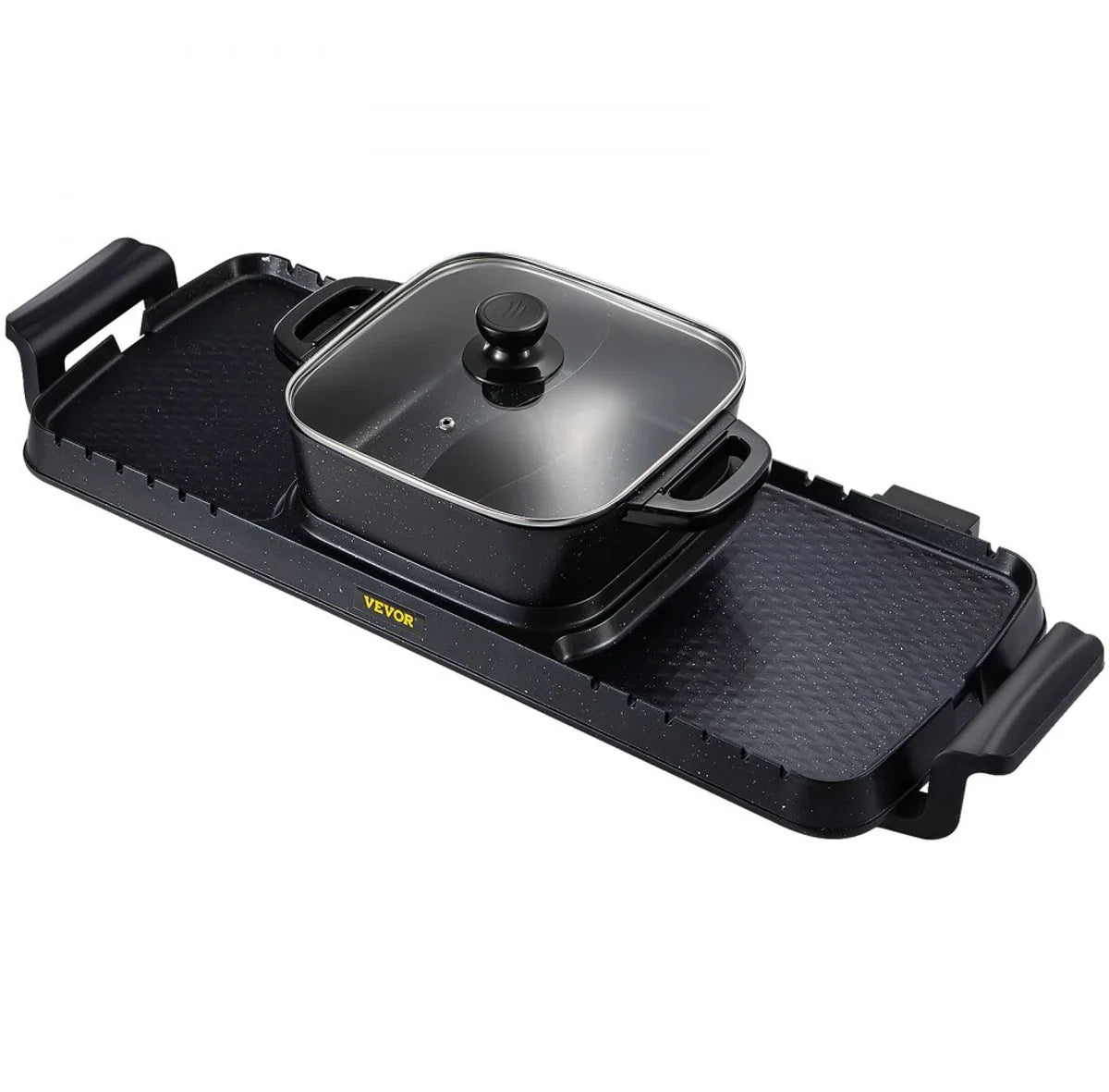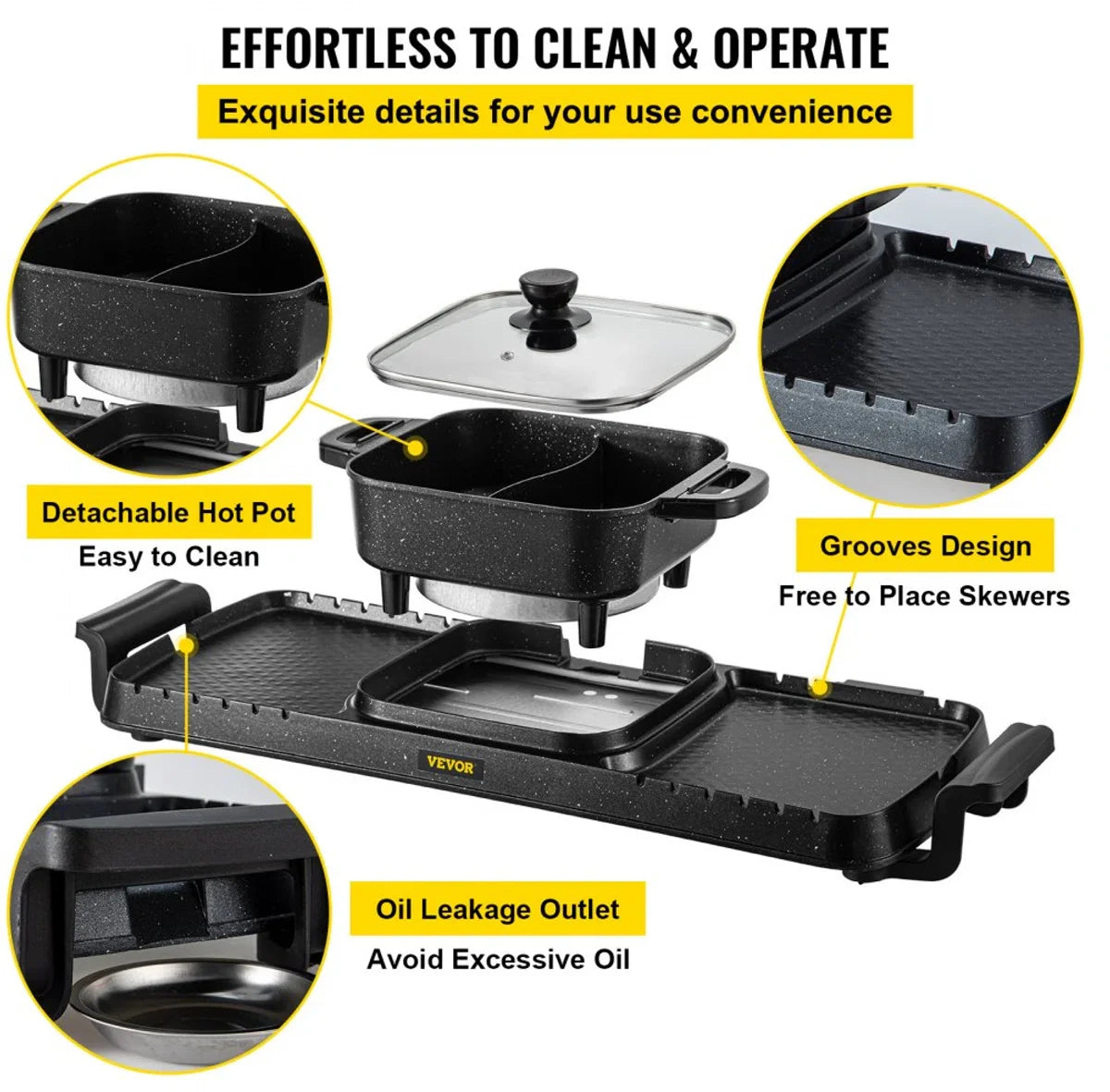 2 in 1 Bbq Grill Hete Pot 2400W Multifunctionele Elektrische Grill Hot Pot 73,5x26,5x19 cm Grill Indoor Hot Pot van Gegoten Aluminium en Gehard