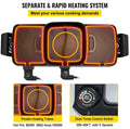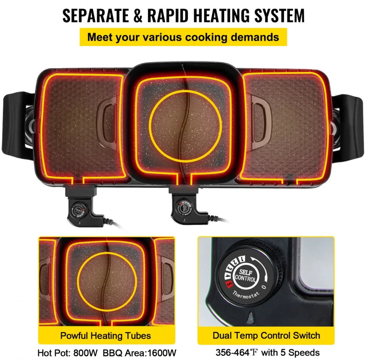 Deze elektrische grill hot pot is uitgerust met drie hoog rendement verwarmingsbuizen, inclusief een 800W buis voor de hete pot en twee 800W buizen voor de gril. Deze snelle en gelijkmatige verwarmingscomponenten zorgen ervoor dat je in korte tijd van eten kunt genieten.