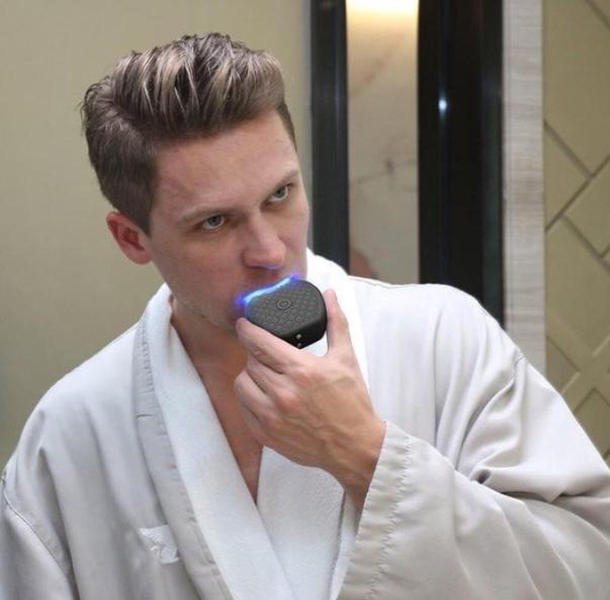 De tandeborstel reinigt je tanden door ultrasone trillingen te creëren in het elektronische mondstuk dat de siliconenborstels zachtjes over alle tandenhoeken borstelt en 99,98% van de schadelijke bacteriën die je tanden en tandvlees aanvallen, verwijdert. Daarnaast heeft de tandenborstel ook tandenbleekmogelijkheden met behulp van geavanceerde koudlicht technologie. Wanneer het wordt gecombineerd met een waterstofperoxide-bleekgel, zal het koude licht dat door de tandenborstel wordt uitgezonden, helpen door de gel in werking te stellen die vervolgens het glazuur binnentreedt en vlekken opheft.