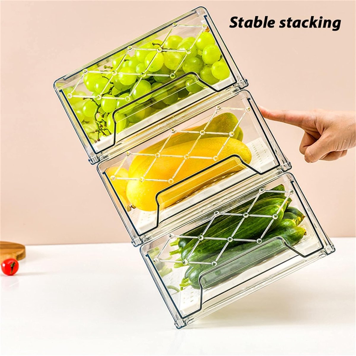 - STAPELBAAR: De koelkastorganizer kan meerdere keren worden gestapeld, is zeer stabiel, bespaart meer ruimte en houdt uw koelkast, vriezer, aanrecht, keukenkast of voorraadkast netjes en opgeruimd. Een opbergdoos is een verwijderbare lade die gemakkelijk opengaat, zodat je gemakkelijk bij de spullen kunt die je nodig hebt.