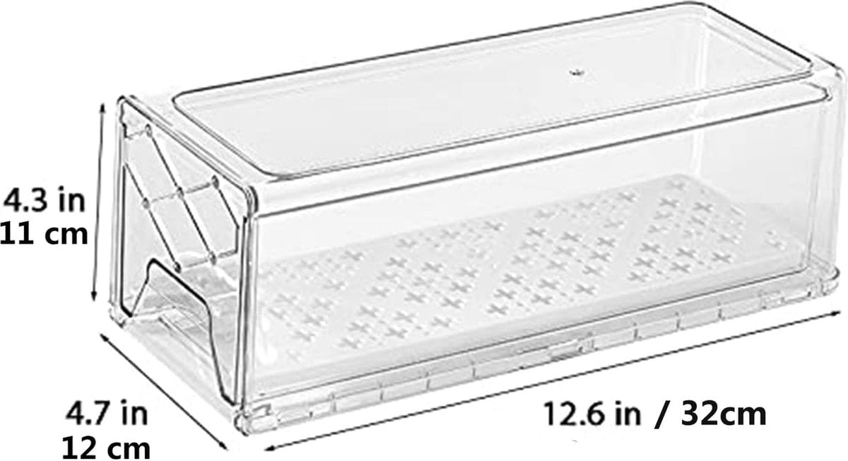 2 Middel Lades Koelkastorganizer-set, Keuken Koelkast & Kast Opslag Trays, transparante koelkast opbergdozen met handgrepen voor Vriezers, Koelkast en Voorraadkast