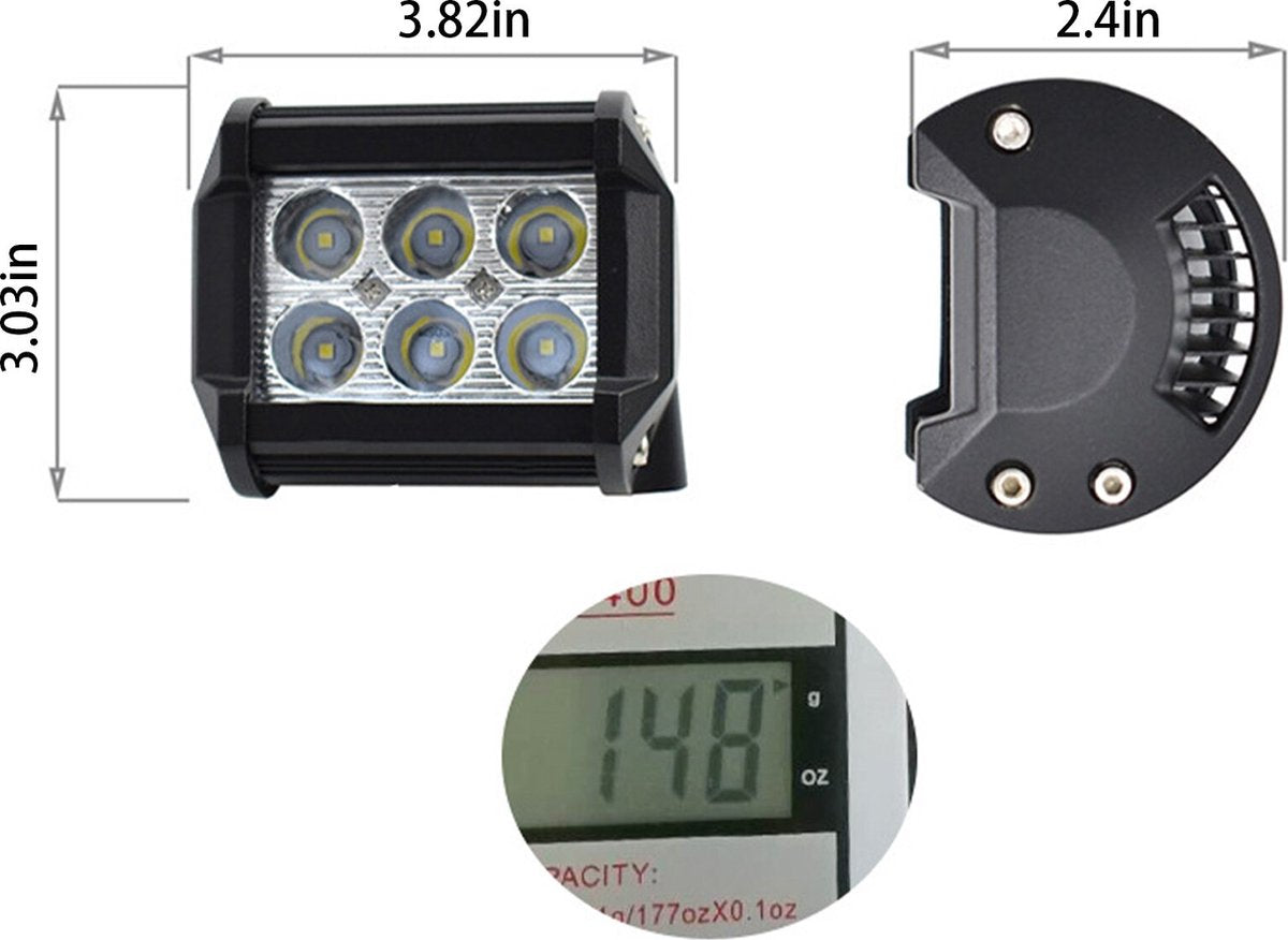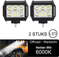 (2 Stuks) 18 Watt 12V LED Lamp voor Offroad verlichting Verstraler werklamp IP67 | 6000K | SUV | ATV | Boot | Bus |