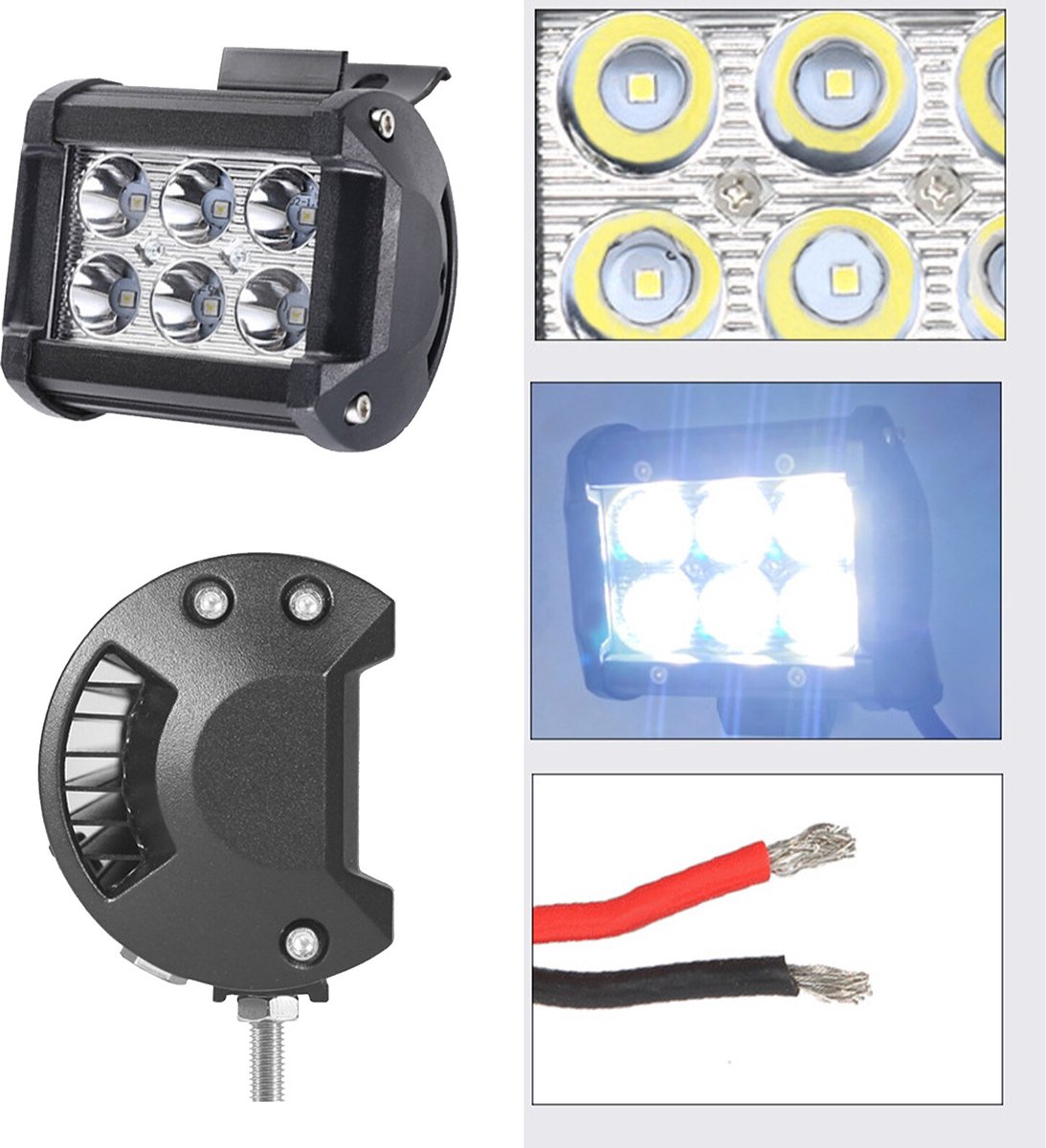 (2 Stuks) 18 Watt 12V LED Lamp voor Offroad verlichting Verstraler werklamp IP67 | 6000K | SUV | ATV | Boot | Bus |