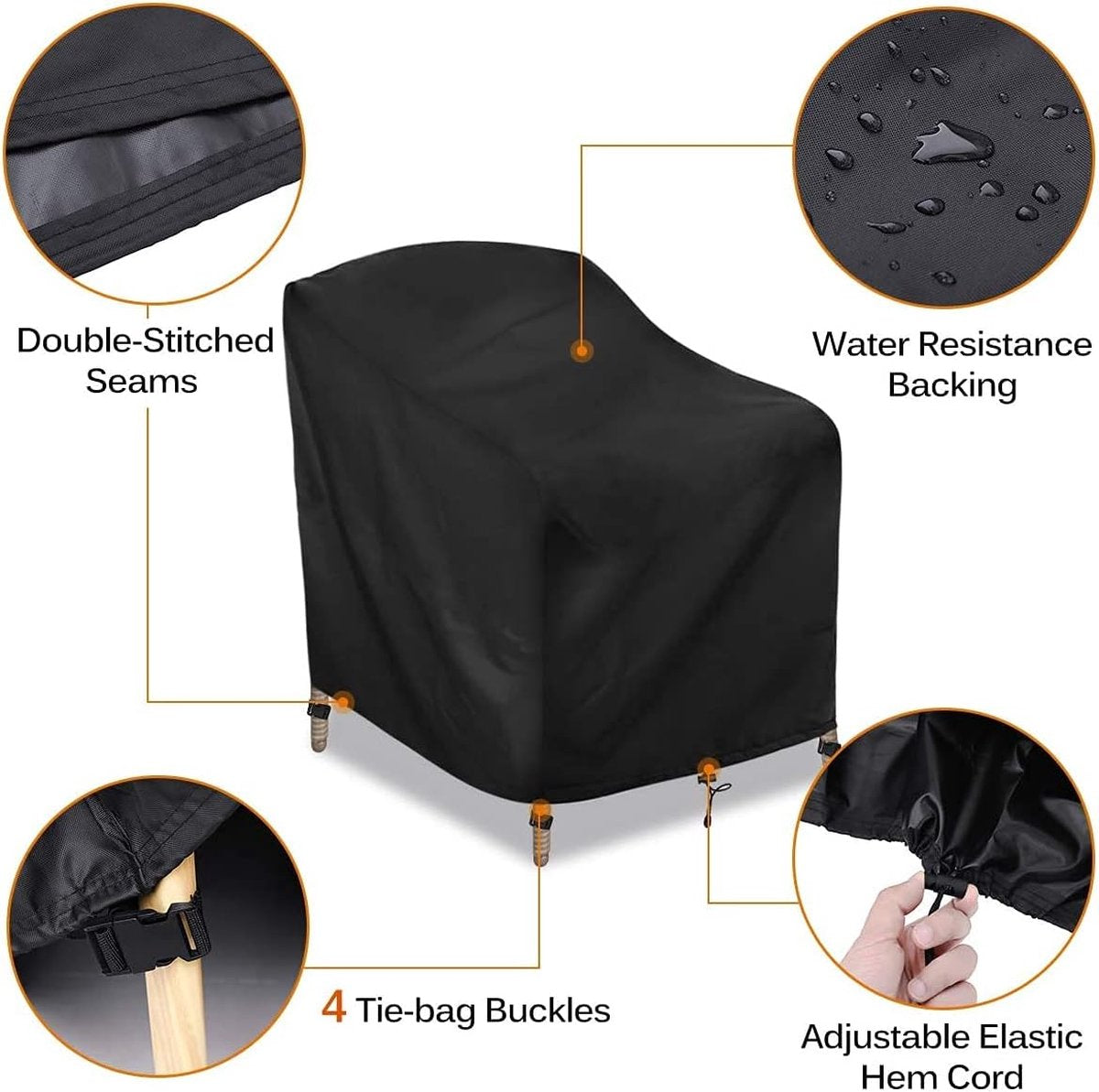 Hoogwaardig waterdicht 420D-materiaal: het 420D-polyesterweefsel met waterafstotende coating en waterdichte ondercoating maakt het tot een waterdichte hoes voor tuinmeubelen zoals tuinstoelen, stapelstoelen, terrasstoelen. De stoelhoezen beschermen de tuinstoelen effectief tegen slijtage, uv-stralen, reflecteren de warmte en andere buitenelementen zoals zon, vuil en regen. UV-bescherming en windbescherming】- Patio Chair Cover beschikt over een uv-gestabiliseerde coating die je stoelen tegen sterk zonlicht beschermt. We voegen aan de onderkant vier klikriemen toe om de afdekking steviger te maken. Kan voorkomen dat de stoelhoes op winderigste dagen wordt weggeblazen, waardoor je stoel beter wordt beschermd tegen zonlicht, regen, sneeuw, wind en stof. terrasstoelbekleding houdt je stoel in de beste staat. Geschikt voor alle soorten slecht weer】Uitgebreide bescherming: 4 tie-bug-gespen, die speciaal zijn ontwikkeld om de onderkant van de poten te omwikkelen en te voorkomen dat de tuinstoelhoes in de wind beweegt of wegblaast. Het verstelbare krimpkoord kan gemakkelijk worden aangepast aan terrasstapelstoelen van verschillende afmetingen. Zelfs onder zware omstandigheden kan je stapelstoel veilig, schoon en droog zijn. Brede compatibiliteit】- 80 x 85 x 92 cm/89 x 97 x 74 cm/97 x 79 x 74 cm. Deze tuinstapelstoelhoes is geschikt voor verschillende soorten tuinstapelstoelen en is goed geschikt voor bescherming tegen buitenelementen zoals sterke wind, regen, zon, sneeuw, bladeren, stof en meer. Het kan ook binnenshuis worden gebruikt. Controleer de afmetingen van je meubels en apparaten op de juiste pasvorm.