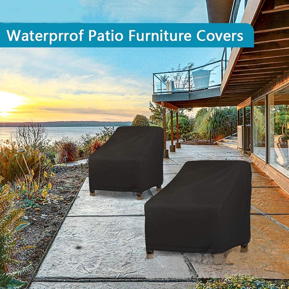 2 stuks beschermhoes voor tuinstoelen, afdekking voor tuinmeubelen, 420D Oxford, waterdicht, winddicht, uv-bescherming, voor tuinstoel, stapelstoelen
