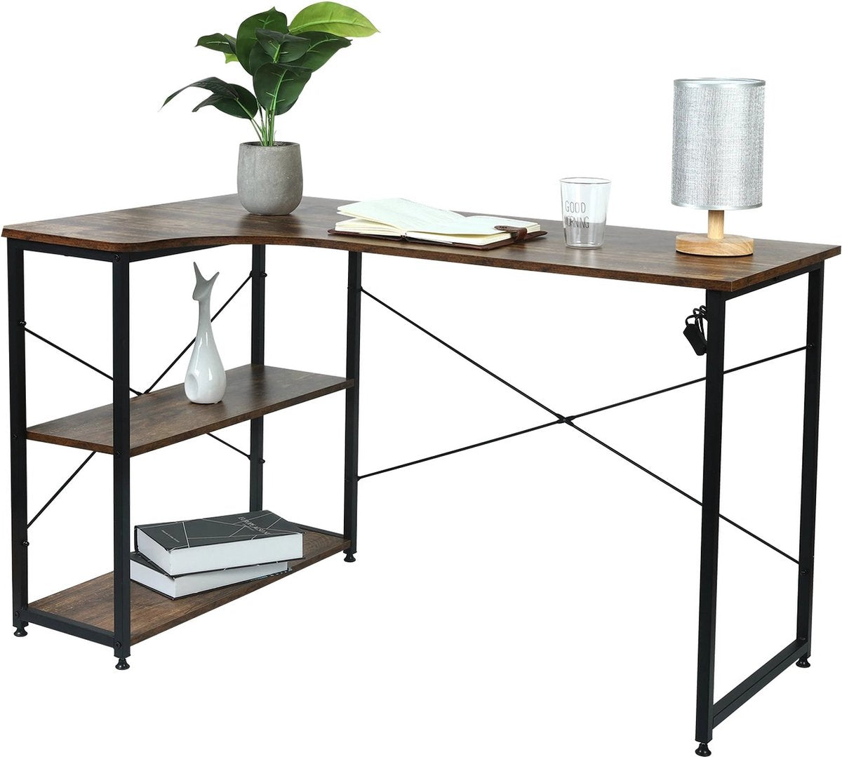 Asaam-Computertafel-Bureau met 2 legplanken-Computer Pc Bureau -Kantoor tafel-Werktafel Met Boekenplank-Workstation Voor Home Office-Moderne Schrijven Studie Tafel