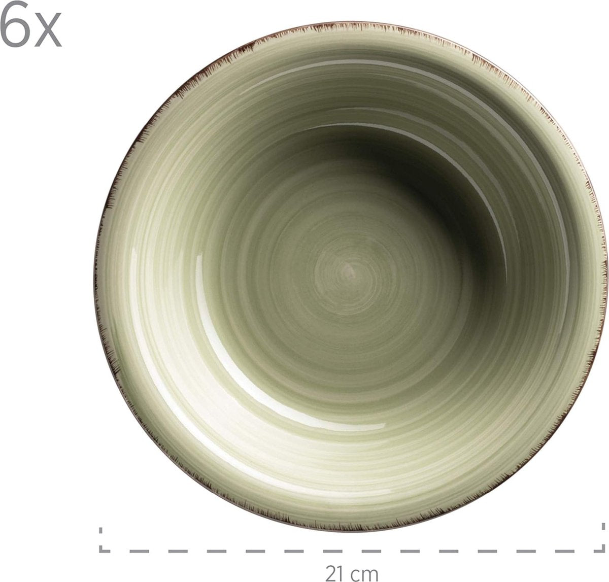 - Deze modern-rustieke serviesset bestaat uit 6 diepe soepborden en 6 platte platte platte borden in de kleur olijfgroen.
