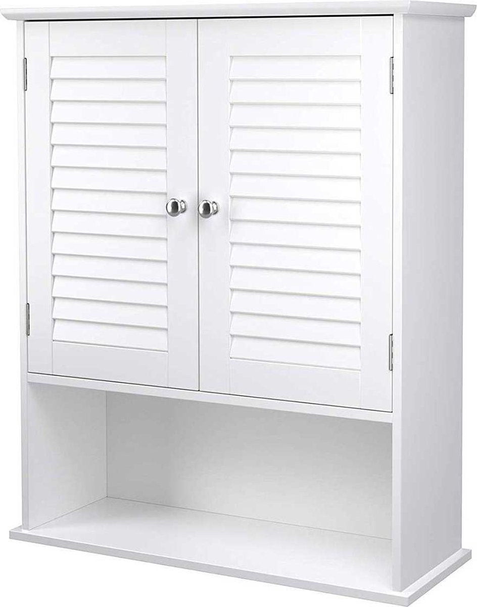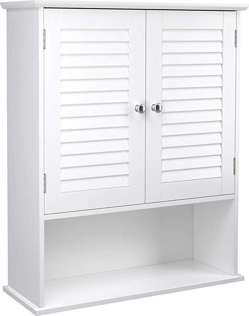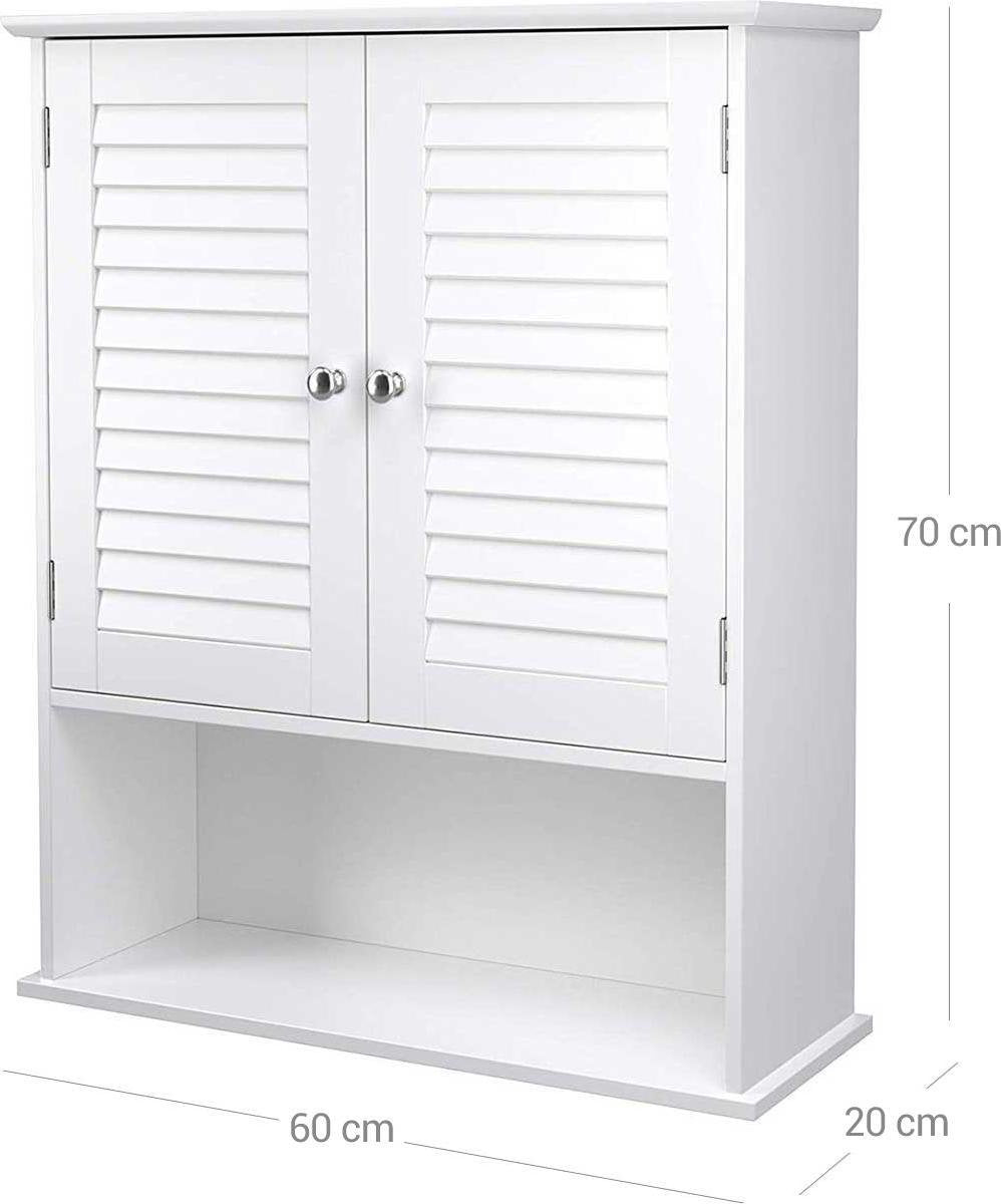- ELKE KAMER ZOU DEZE KAST WILLEN: Uitgerust met een dubbele deur en 2 verchroomde metalen knoppen en gemaakt van robuust MDF (klasse E1), past deze elegante wandkast perfect in je badkamer, woonkamer, gang of andere kamers