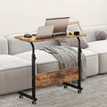 Bureau In hoogte verstelbaar laptoptafel, computertafel met tabletsleuf, 80 x 40 cm, pc-tafel, banktafel, verzorgingstafel, bijzettafel met wieltjes, vintage bruin