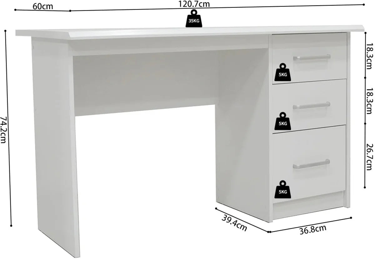 Het bureaublad heeft een draagvermogen van 35 kg, waardoor het geschikt is voor verschillende werkmaterialen en apparatuur. Elke lade biedt een draagvermogen van 5 kg, waardoor je kleine kantoorbenodigdheden netjes kunt opbergen en binnen handbereik kunt houden.