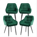 ByLoesje® Set van 4 Eetkamer Stoel Groen - Armleuningen - Fluweel - Gestoffeerd - Designstoel - Modern - Poten Zwart