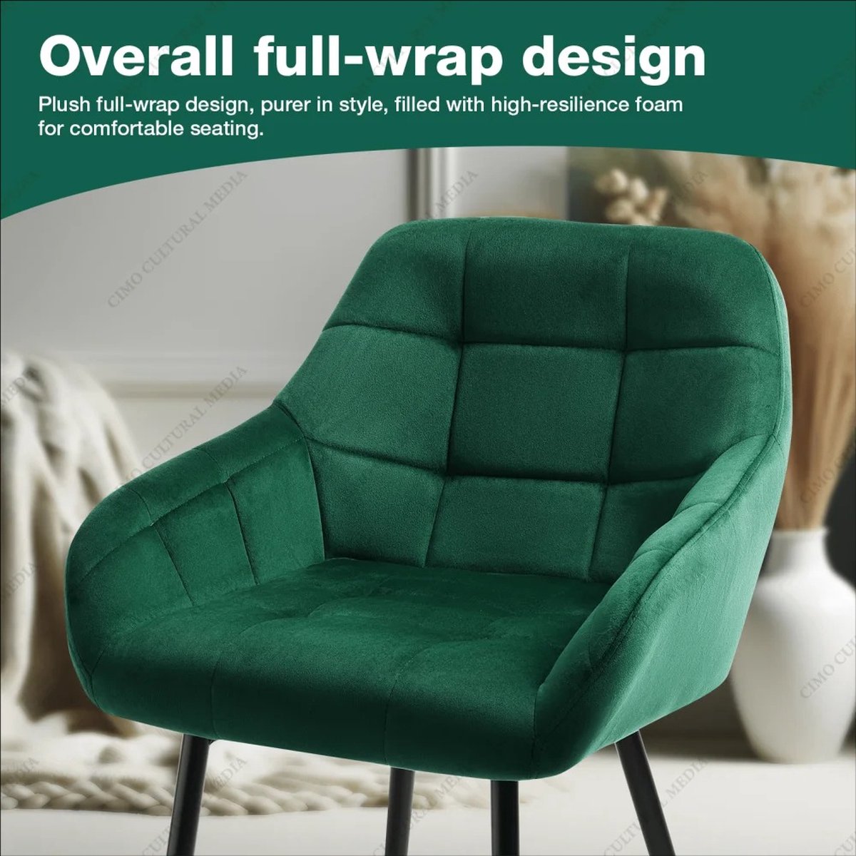 - Luxueus fluweel : Zachte, groene bekleding die een verfijnde en uitnodigende sfeer creëert in je eetkamer.