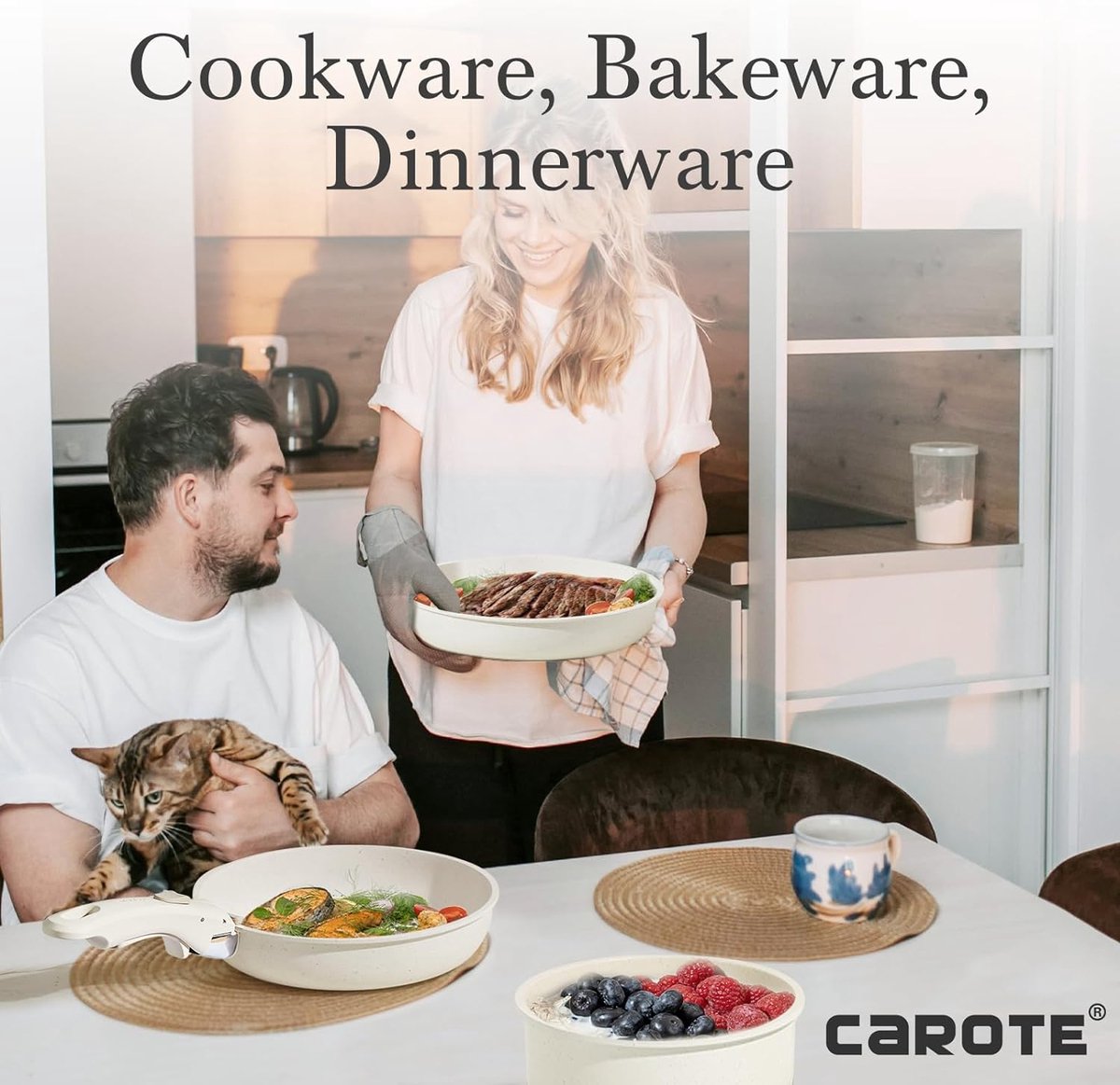 - Milieuvriendelijke antiaanbaklaag met granieteffect: Inductiepannenset met geavanceerde, duurzame coating met wit granieteffect en 10x ultra antiaanbaklaag, vrij van PFOS/PFOA/PFAS. De CAROTE pannenset maakt je dagelijks koken veiliger en gezonder.