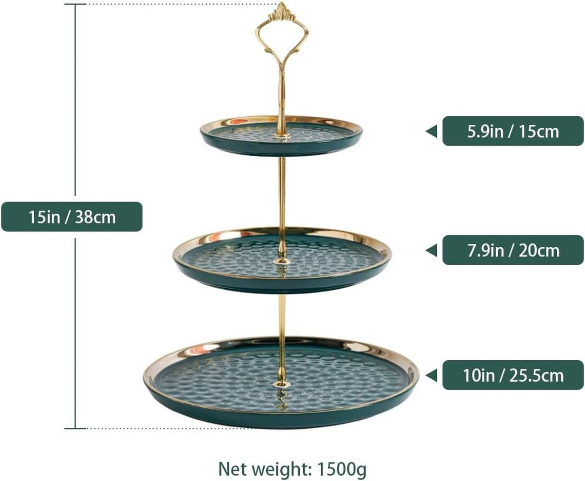 Cupcakestandaard - Keramiek - Taartstandaard Met 3 Lagen - Goud - Tafels - Fruitborden Voor Salontafel - Decoratie - Cupcake En Borden - Dessert - Standaard - Groen