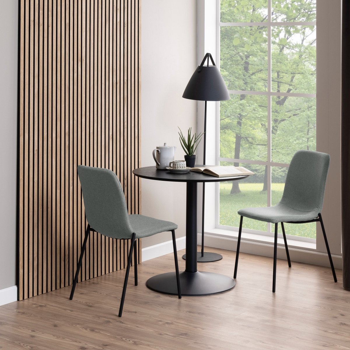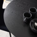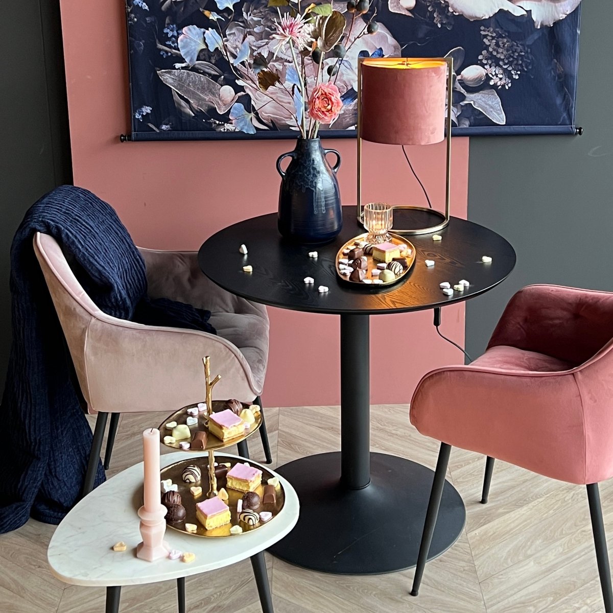 Deze prachtige eettafel Heeze is een perfecte toevoeging aan je interieur. Met zijn ronde vorm creëert hij een gezellige sfeer waar je gezellig met elkaar kunt zitten. De tafel past goed in verschillende interieurstijlen, zoals de Scandi-stijl of eigentijds industrieel, dankzij zijn strakke trompetvoet.Het tafelblad van de Heeze is afgewerkt met een zwart essen fineer en heeft een facet rand, wat zorgt voor een luxe en elegante uitstraling.
