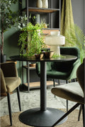 - Diameter: 80 centimeter, perfect voor 2 à 3 personen.- Hoogte: 75 centimeter.- De slanke trompetvoet is gemaakt van zwart metaal en moet nog gemonteerd worden.Met deze prachtige eettafel Heeze haal je niet alleen een stijlvol meubelstuk in huis, maar ook een gezellige plek om samen te komen.