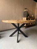 Let op: omdat mangohout een natuurproduct is, kan de kleur en de afwerking van het blad verschillen dan op de foto wordt getoond, ieder item is uniek. De metalen onderstellen van de tafels zijn afwerkt met een matzwarte finish, waardoor de tafel perfect in zowel moderne, industriële als in landelijke inrichtingen.