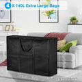 Extra grote opbergzakken voor verhuizen - 140L - onder bed opbergzak met ritssluiting voor kleding dekbed - reizen kamperen - opvouwbare verhuisdozen - groot sterk - zwart sheet organizer