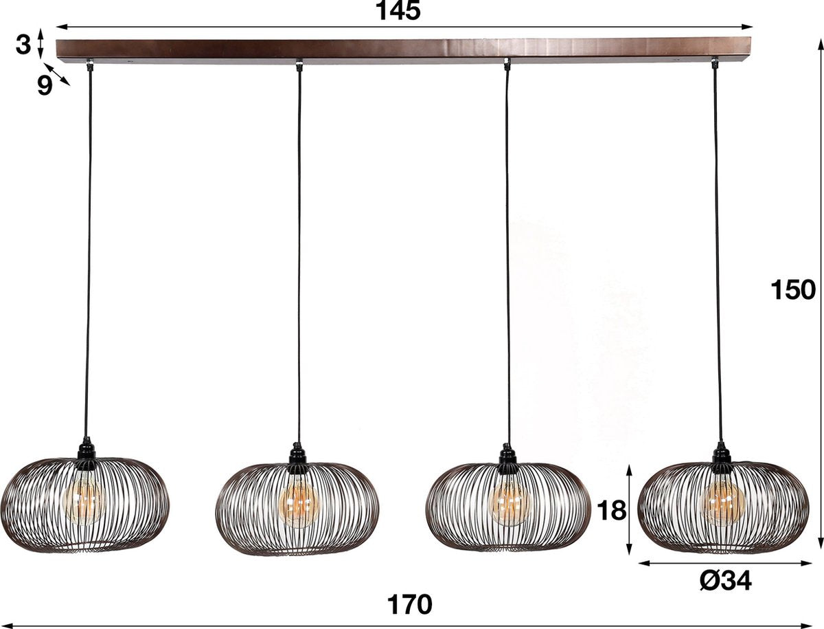 Hanglamp Copper Twist | 4 lichts | zwart nikkel | metaal | Ø 34 cm | 170 cm breed | in hoogte verstelbaar tot 150 cm | eetkamer / eettafel lamp | modern / sfeervol design