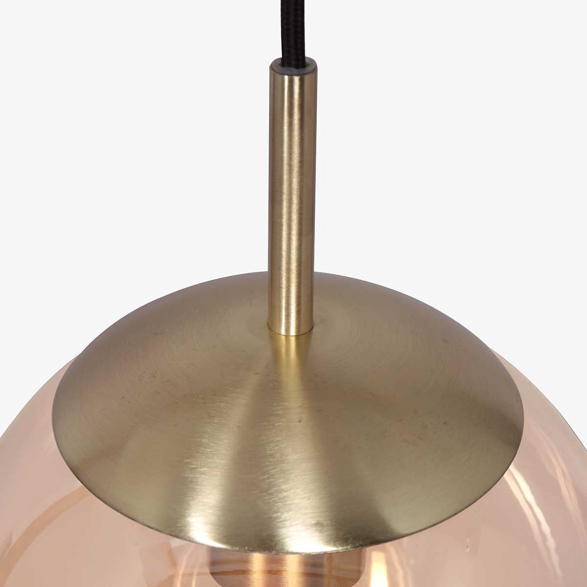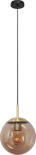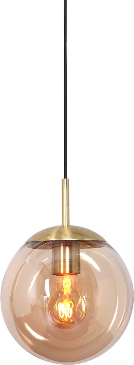 Hanglamp glazen bol | 1 lichts | amber / goud / zwart | glas / metaal | Ø 25 cm | in hoogte verstelbaar tot 170 cm | eetkamer / eettafel lamp | modern / sfeervol design